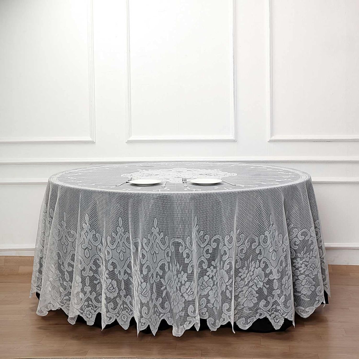 Tableclothsfactory 120" Ivory Premium Lace Round Tablecloth for Banquet Party Wedding Event Home Decor