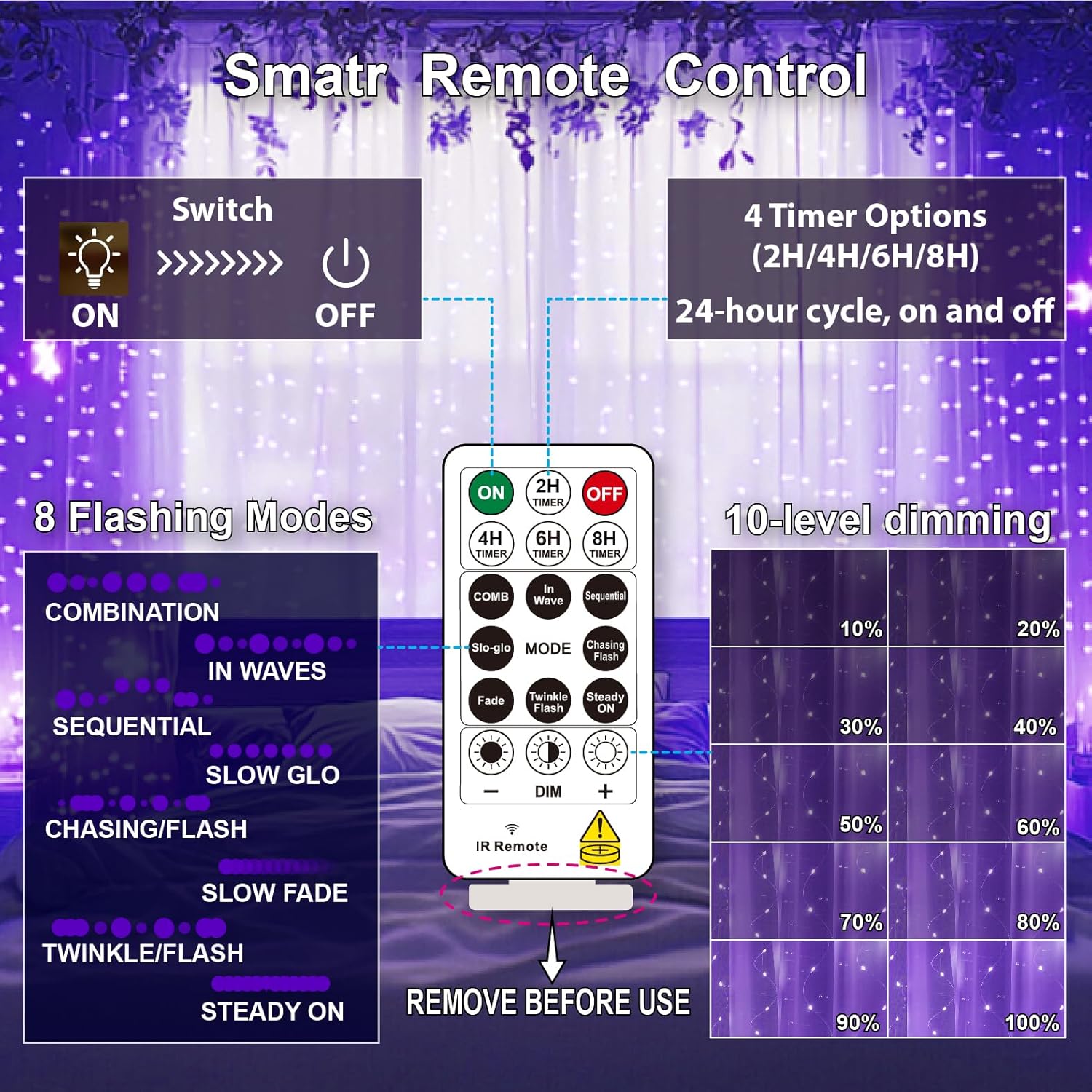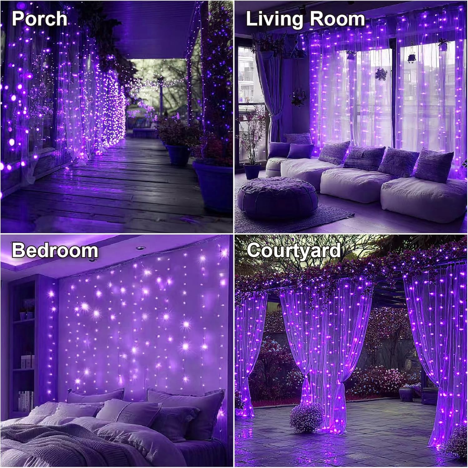 HXWEIYE 300LED Fairy Curtain Lights, 9.8x9.8Ft USB Plug-in 8 Modes Christmas String Hanging Lights with Remote for Bedroom Backdrop Wedding Party Indoor Wall Decor, Purple