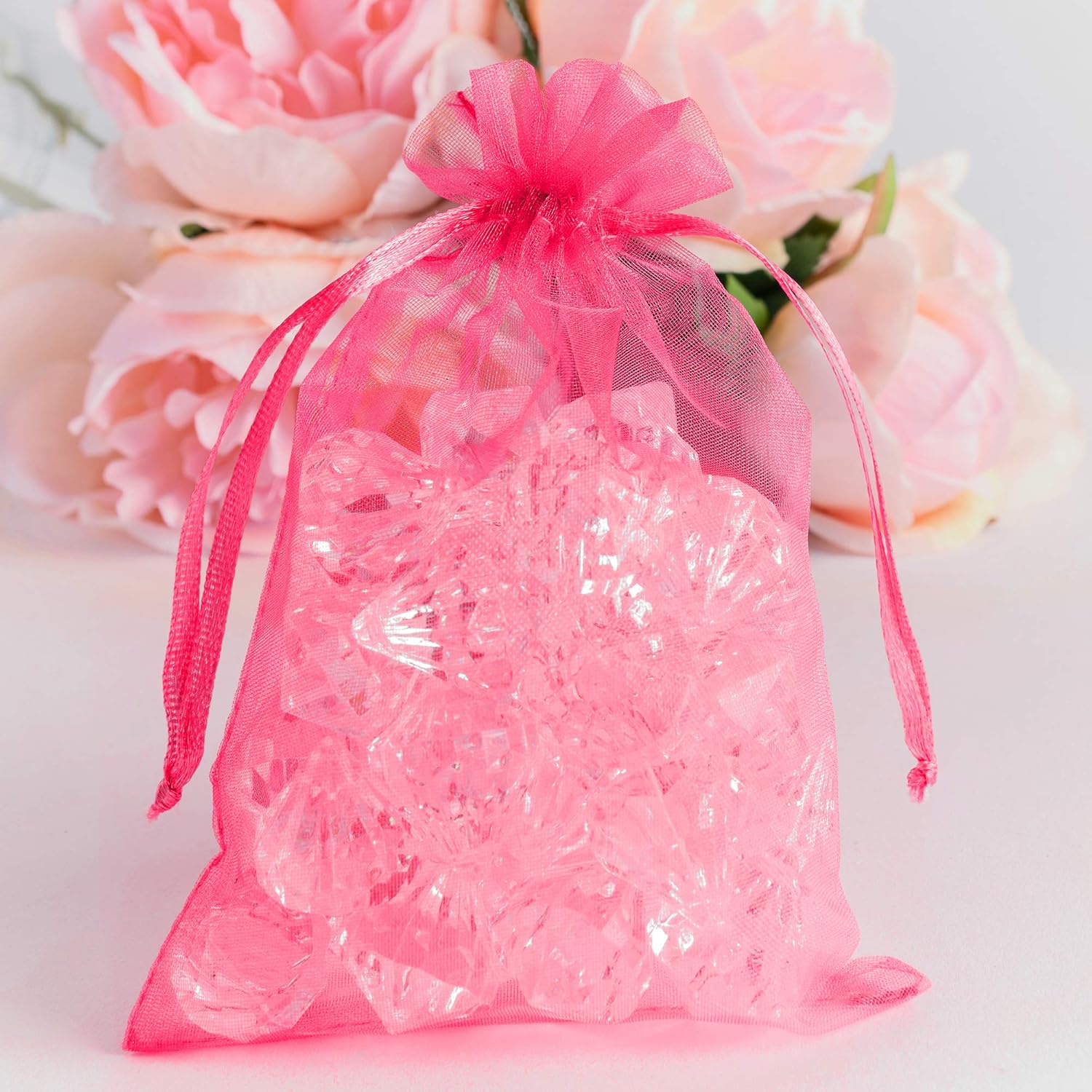 Super Z Outlet 100 Pack 5x7 Inch Mini Sheer Drawstring Organza Transparent Bags Jewelry Sack Pouches for Wedding, Party Decorations, Arts & Crafts Gifts (Fuchsia)
