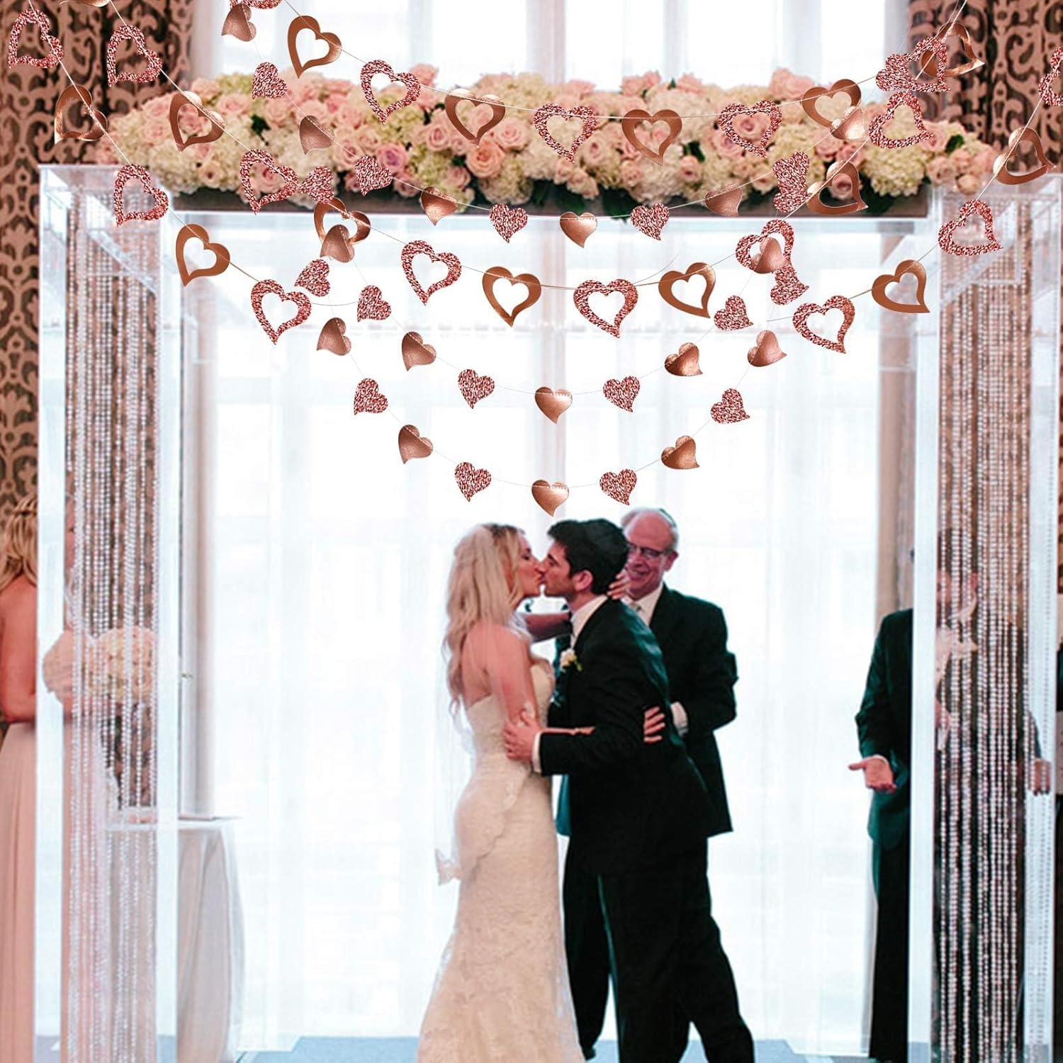 • Unique Lovely Design: Romantic heart banners symbolize love and care, creating glamorous buntings for Valentine's Day, weddings, anniversaries, and parties. Impress guests with luxurious rose gold backdrops and photo booth decorations.