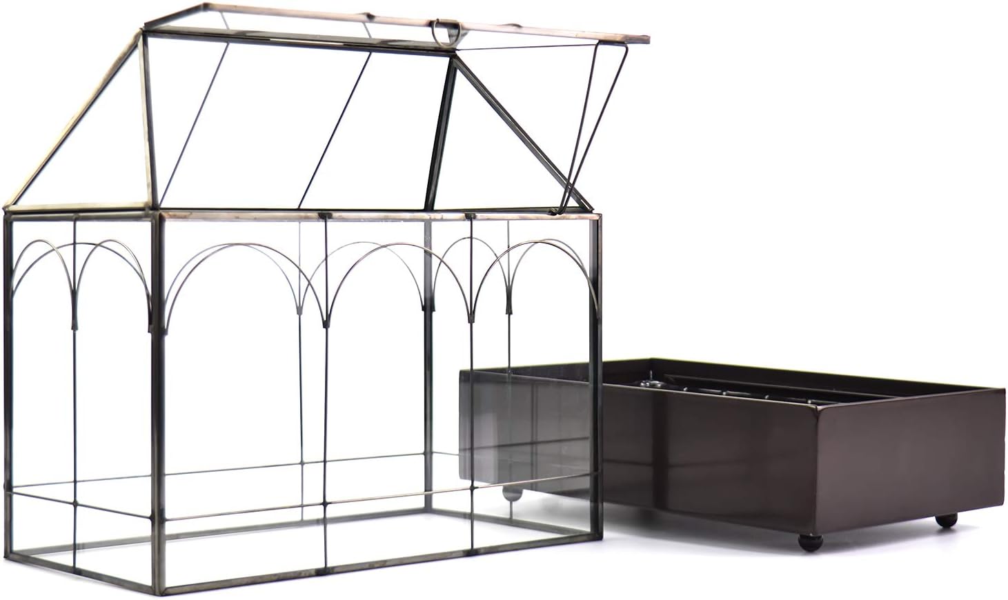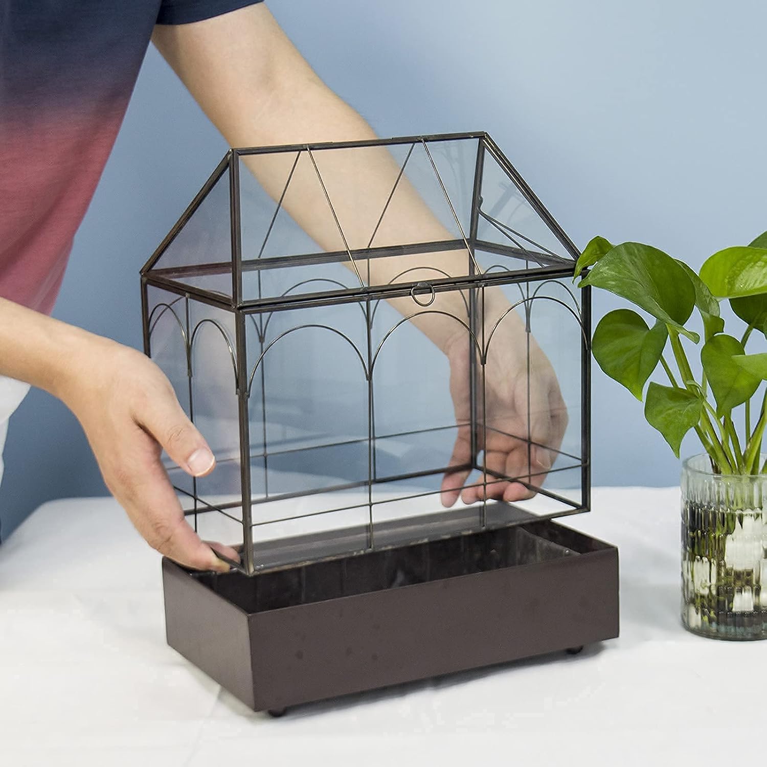 • 【Handmade】The craftsmen carefully welded the brass frame of this glass greenhouse by hand, and put the full transparent glass into the frame, thus forming a exquisite handicraft,this glass terrarium tabletop planter made of reinforced glass, super sturdy.