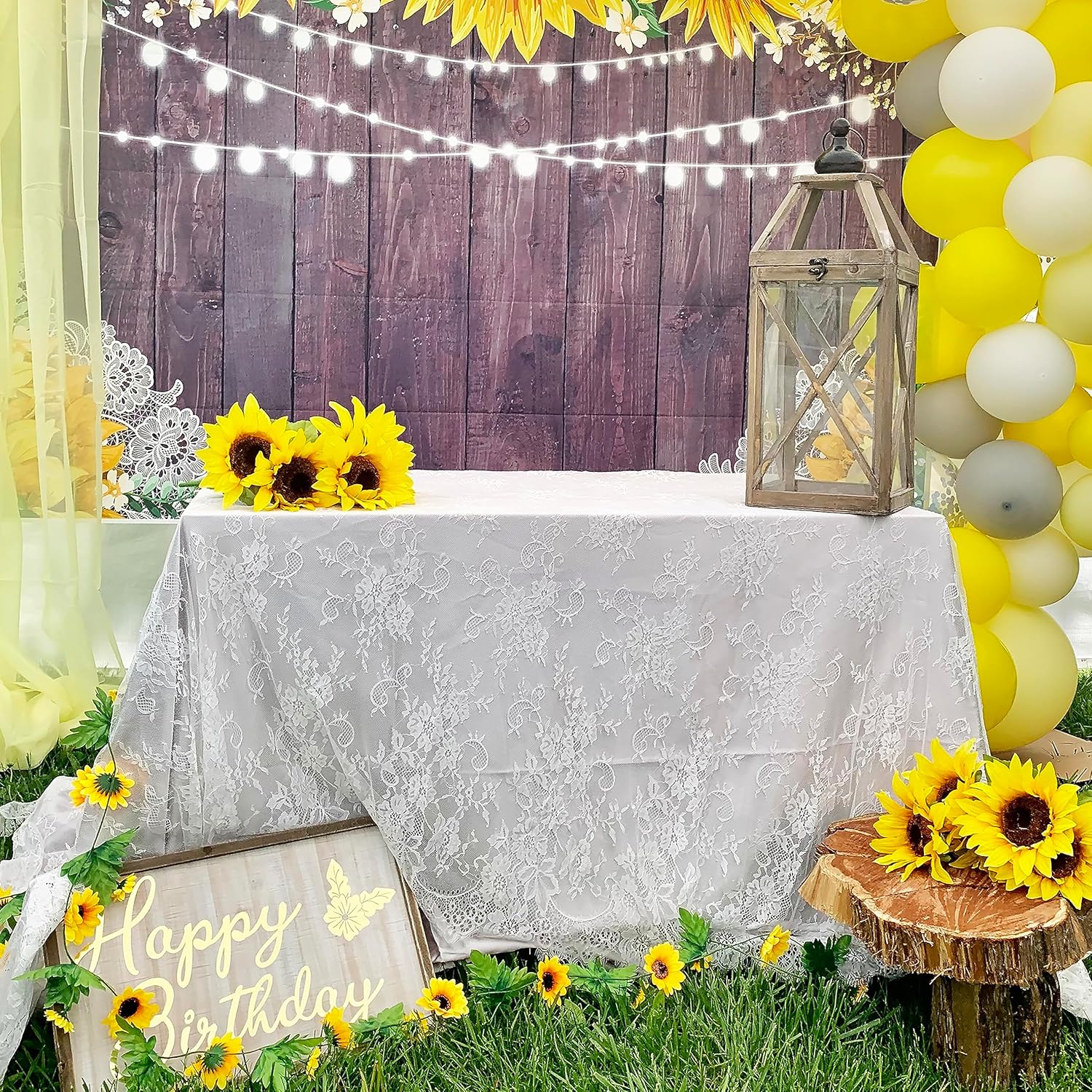 LuoluoHouse 2 Pack 60 x 120 Inch White Lace Rustic Table Cloths Vintage Farmhouse Table Fabric Wedding Outdoor Chic Decoration Embroidered Rectangle Table Linen