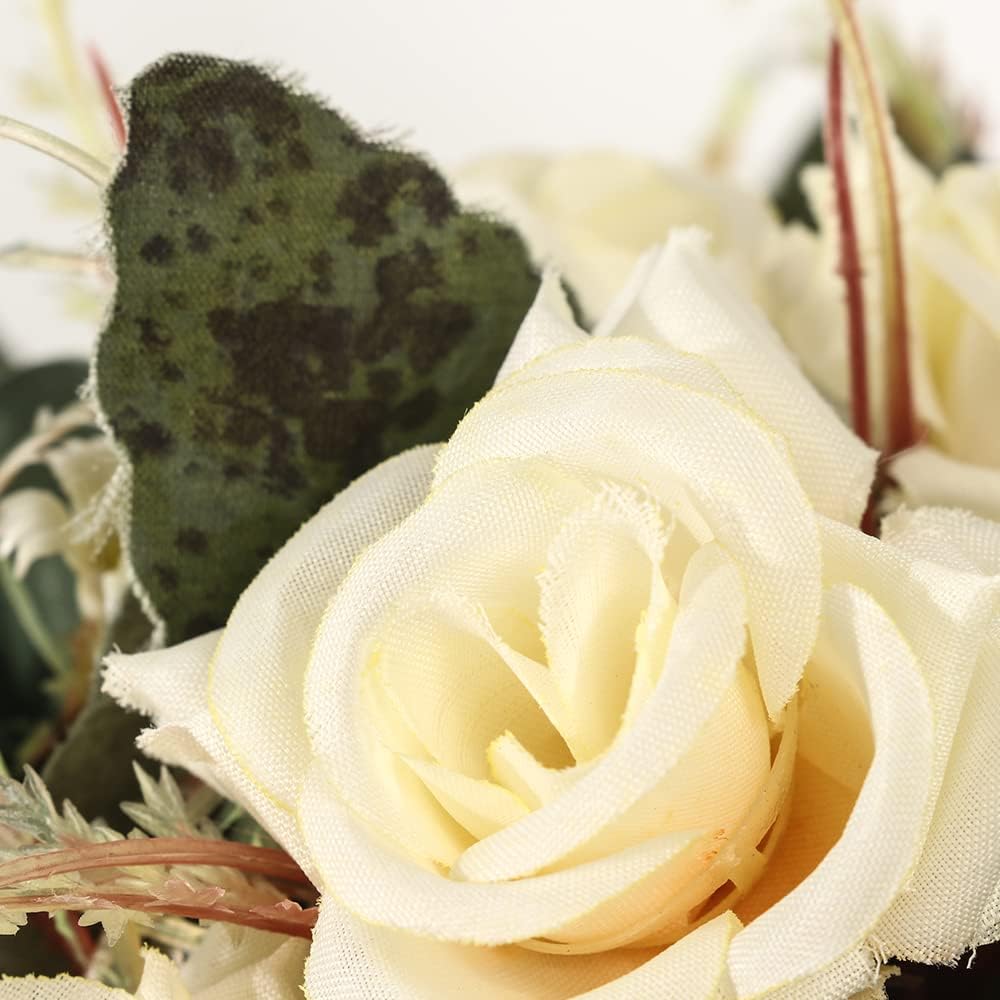 LESING Artificial Rose with Vase,Fake Silk Flowers Bouquets in Vase Table Centerpiece Arrangement for Kitchen Living Room (Champange)