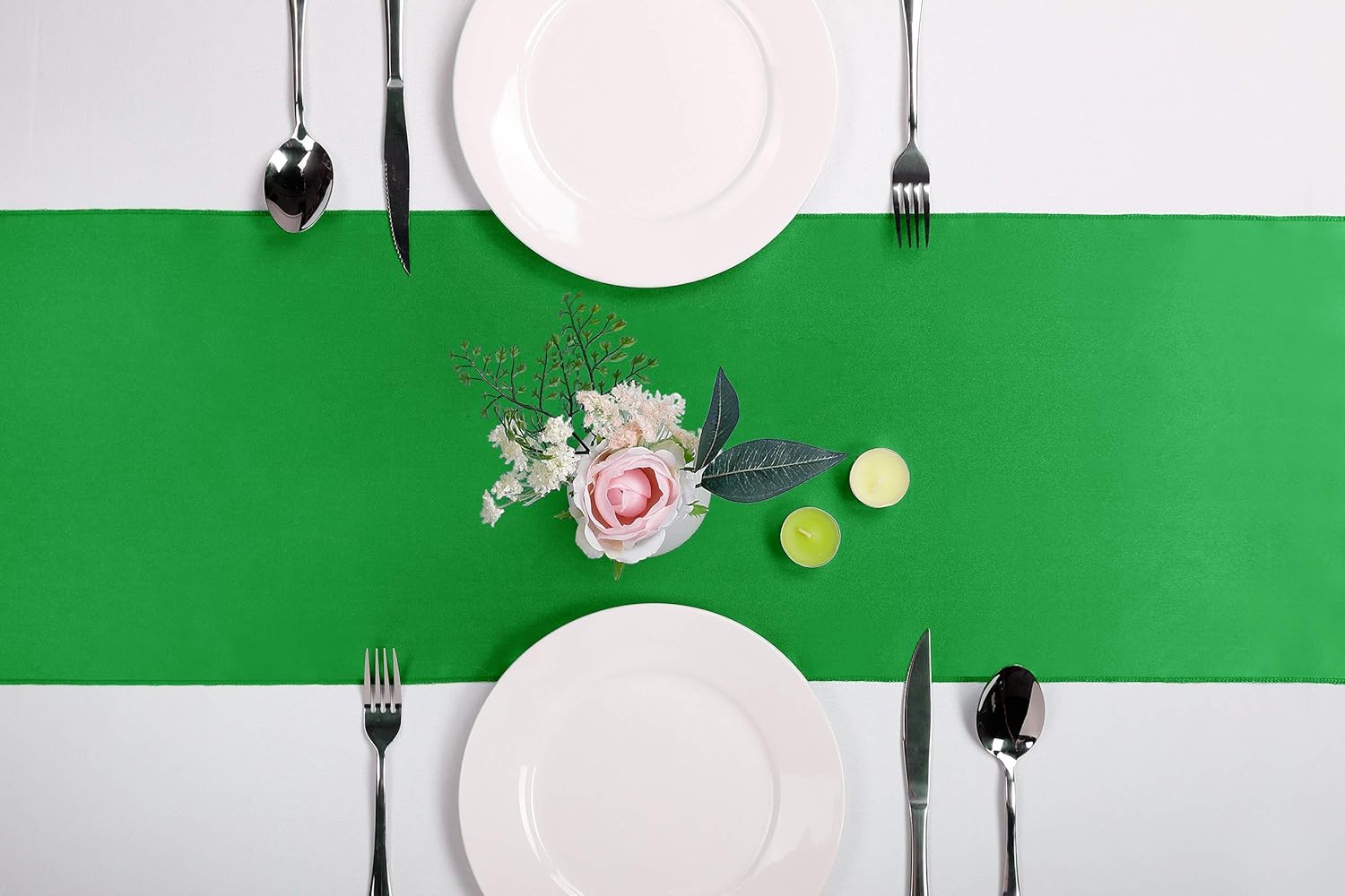 10-Pack Satin Table Runner Emerald 12 x 108 inches Long, Table Runners for Wedding, Birthday Parties, Banquets Decorations(10 Pack, 12x108 Inch, Emerald)