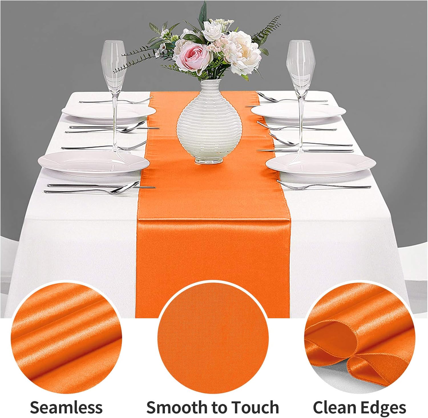 5-Pack Satin Table Runner Orange 12 x 108 inches Long, Table Runners for Wedding, Birthday Parties, Banquets Decorations(5 Pack, 12x108 Inch, Orange)