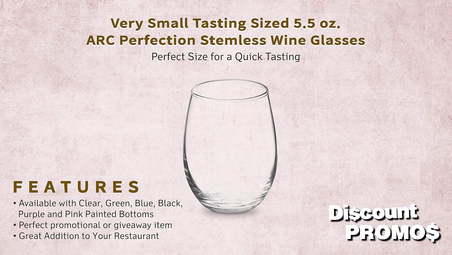 DISCOUNT PROMOS Stemless Wine Glasses by ARC 5.5 oz. Set of 12, Bulk Pack - Perfect for Hotel, Bar, Restaurant or Lounge - Clear