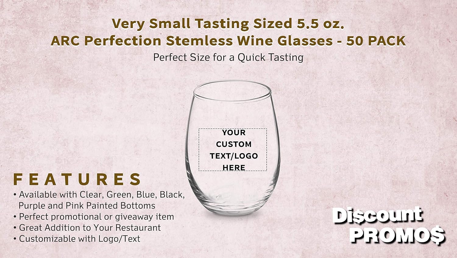 Custom Stemless Wine Glasses by ARC 5.5 oz. Set of 50, Personalized Bulk Pack - Perfect for Hotel, Bar, Restaurant or Lounge - Clear