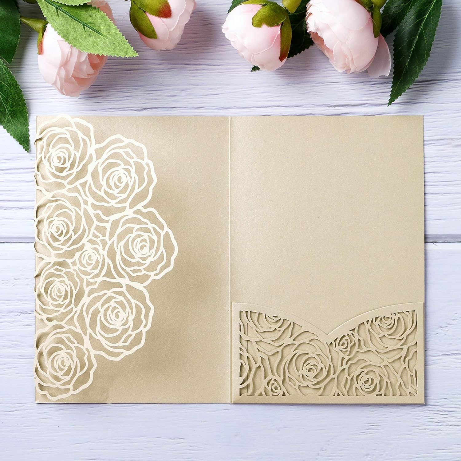 • 🌷.[Design]:The invitation pocket made of high-quality paper, and the laser-cut rose print design for many colors .