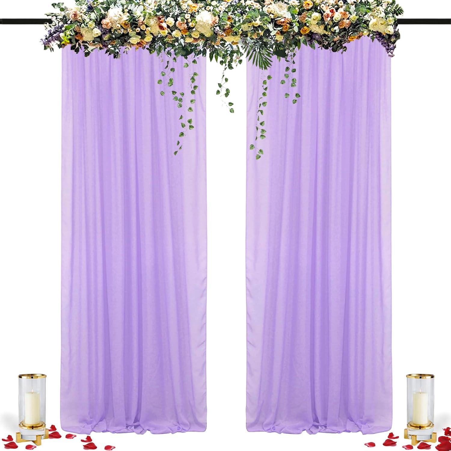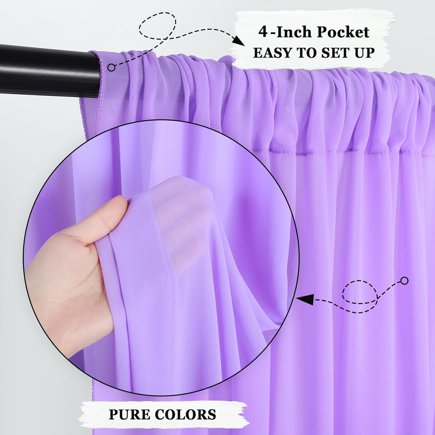 • ★ SHEER CHIFFON CURTAINS :Includes 2 Panels Width 29'' by 120'' Long chiffon backdrop curtain Lavender Sheer Curtains Wedding Chiffon Backdrop.