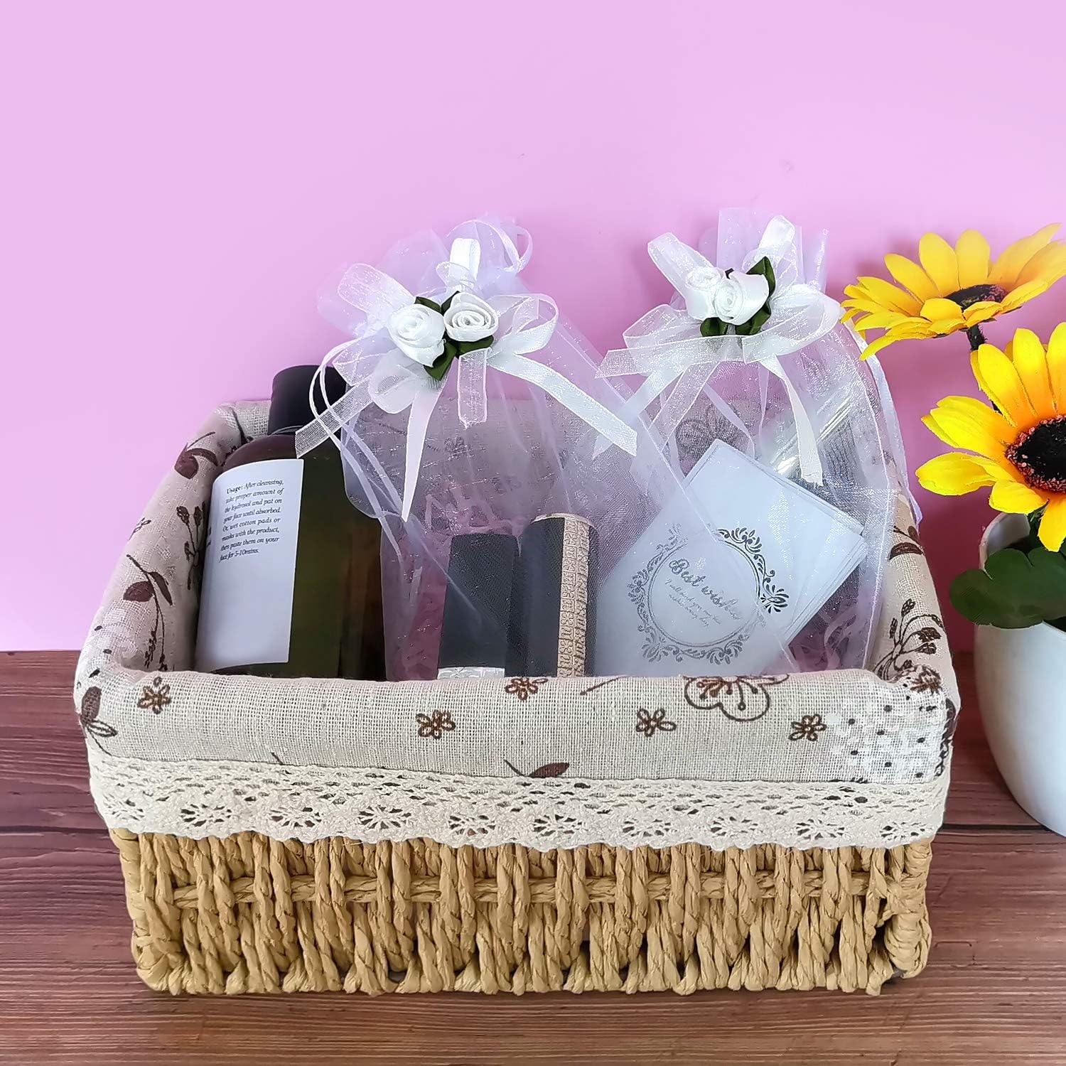 • Rose Decoration: White rose decorated organza bags, adding cute and lovely tint to your occasions