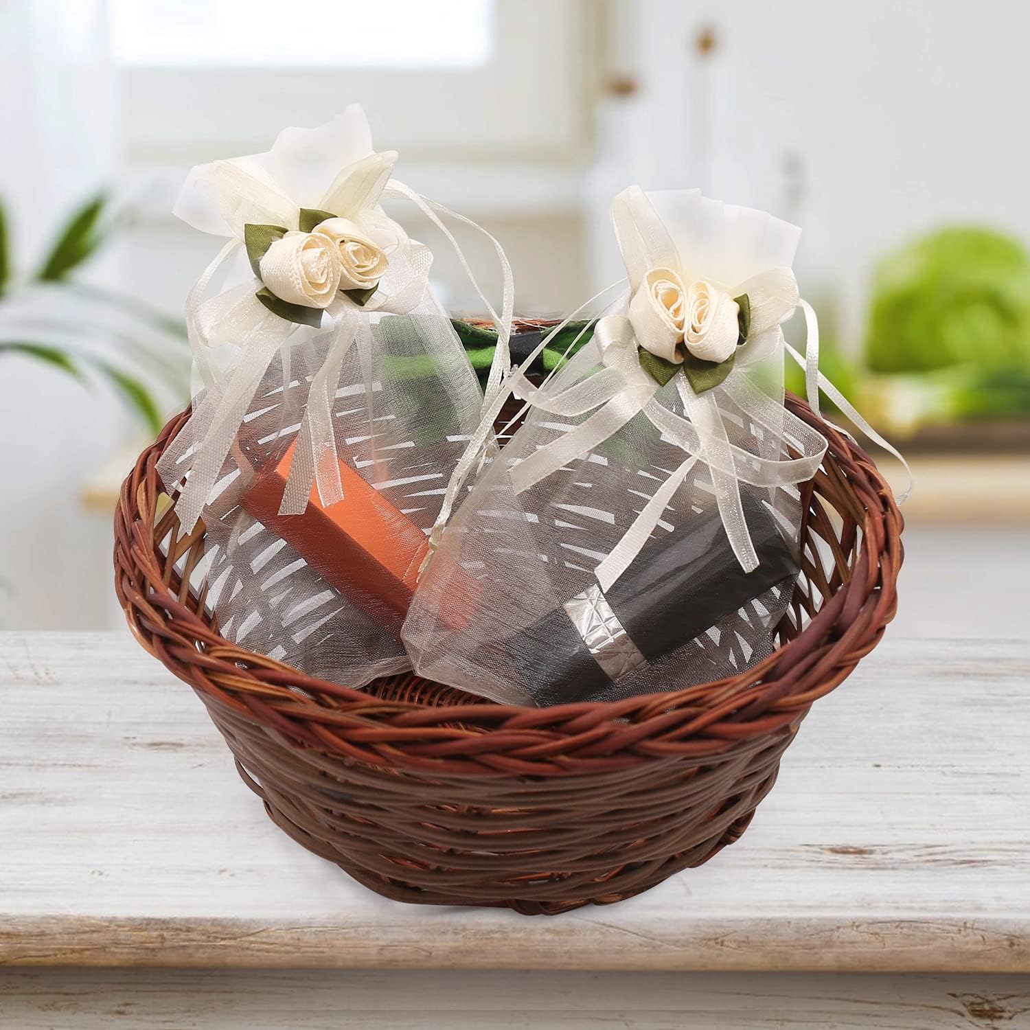 • Rose Decoration: Beige rose decorated organza bags, adding cute and lovely tint to your occasions