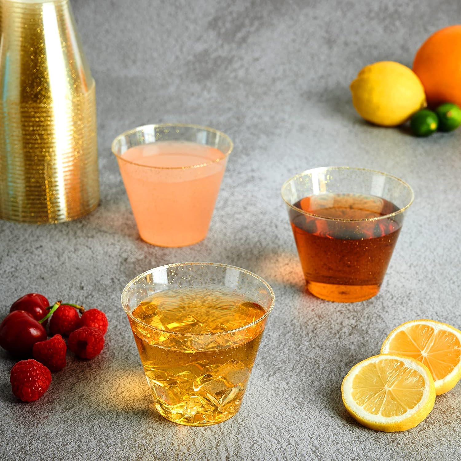 • Fancy & Elegant: The plastic cups are full of golden sparkles, which can add a sense of sophistication to any table setting, 9 oz disposable cups with gold glitter can be matched with beverages of any color, making your party elegant and refined