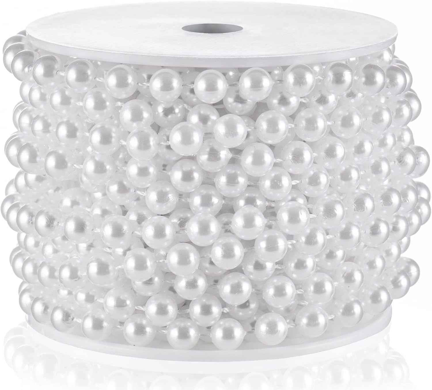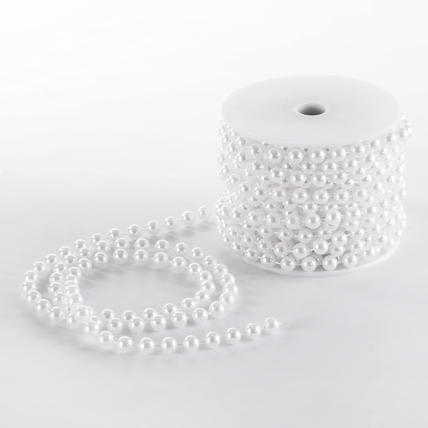 Craft String Pearls 8MM Pearl Bead, 33 Feet White Faux Pearl Garland Spool Roll Strand Wedding Party Decoration, Christmas Tree Decorations