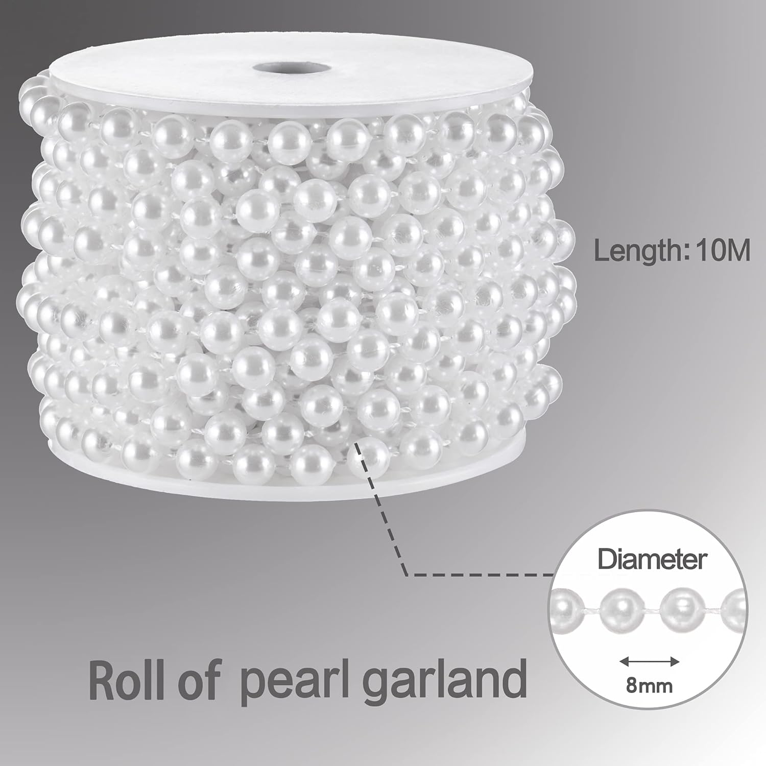• Faux pearl string length: 10m/33feet; Pearl diameter: 8mm. Different sizes and lengths, you can choose according to your needs