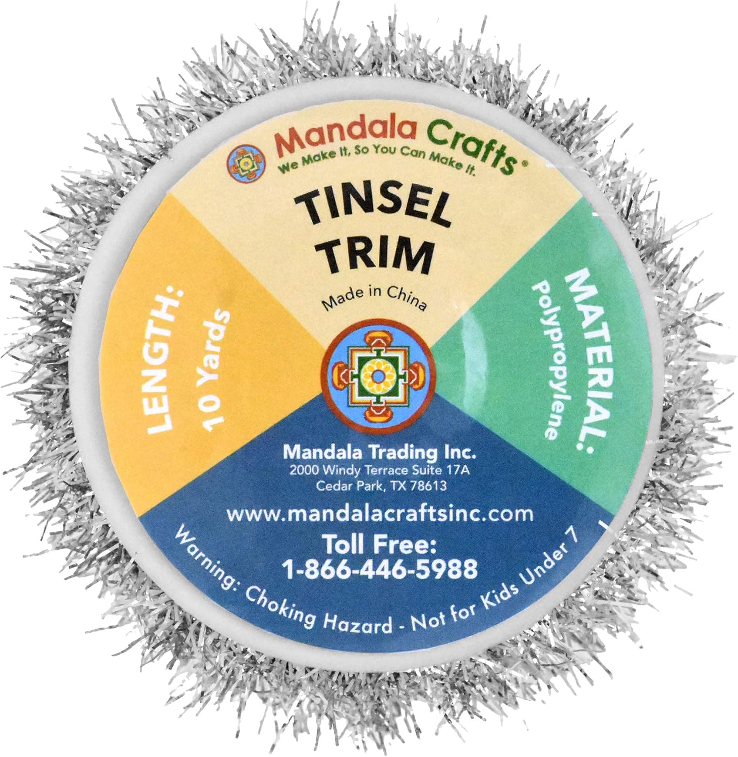 Mandala Crafts Silver Tinsel Garland - Thin Metallic Foil Glitter Mini Garland for Christmas Tree, Party, Wedding Decor, and Holiday Decorations