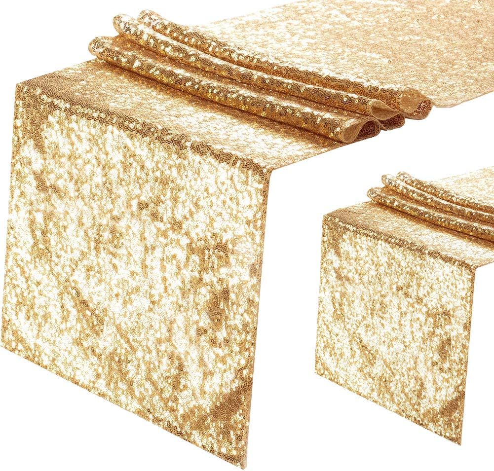 Eternal Beauty Gold Table Runner for Wedding, 2PCS-12x108 Sequin Table Runner Decorations for Birthday Parties, Banquets, Graduations,Christmas