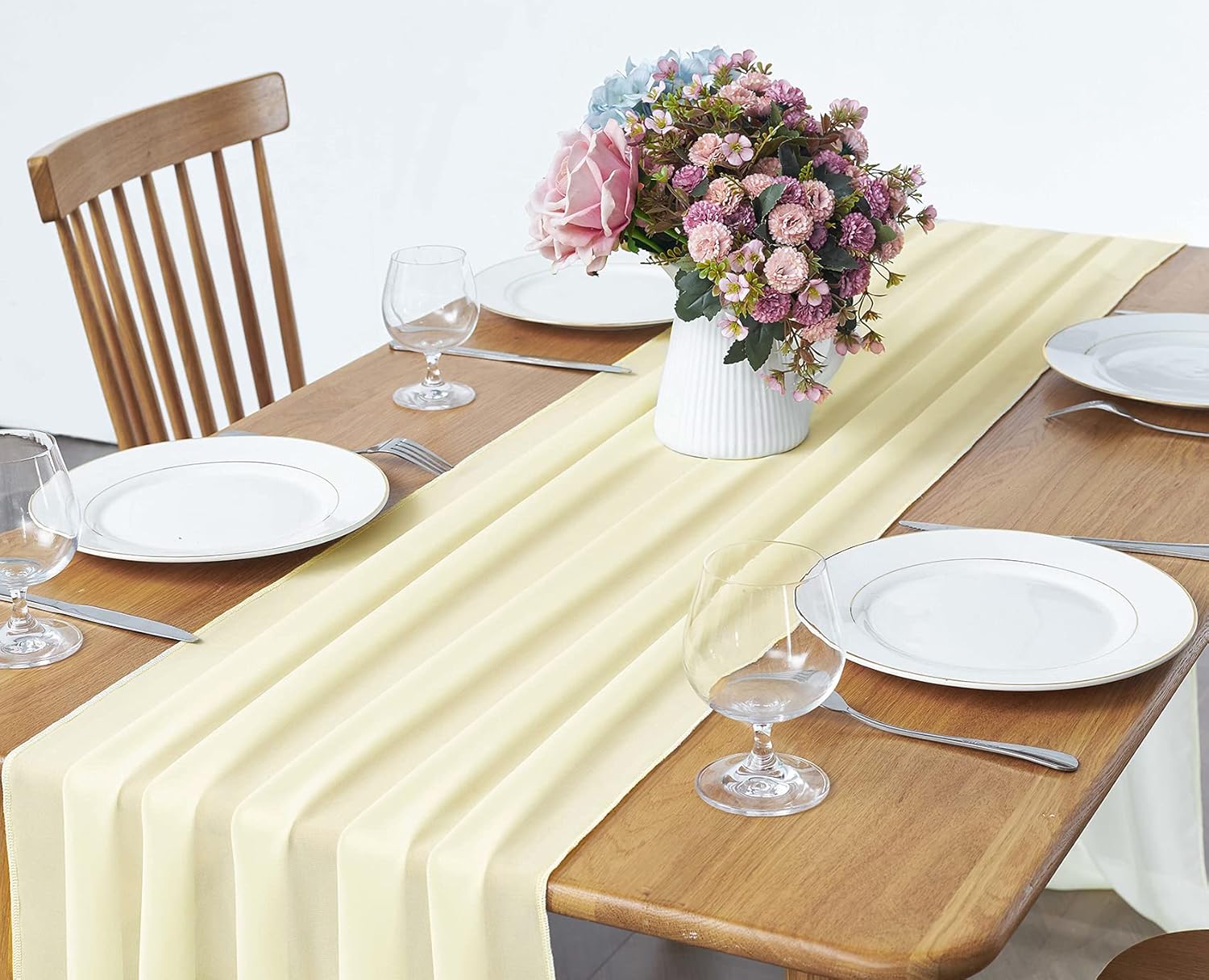 5 Pack 10Ft Light Yellow Chiffon Table Runner Sheer 29x120 Inch for Romantic Wedding Decor Bridal & Baby Shower Birthday Rustic Party Decoration