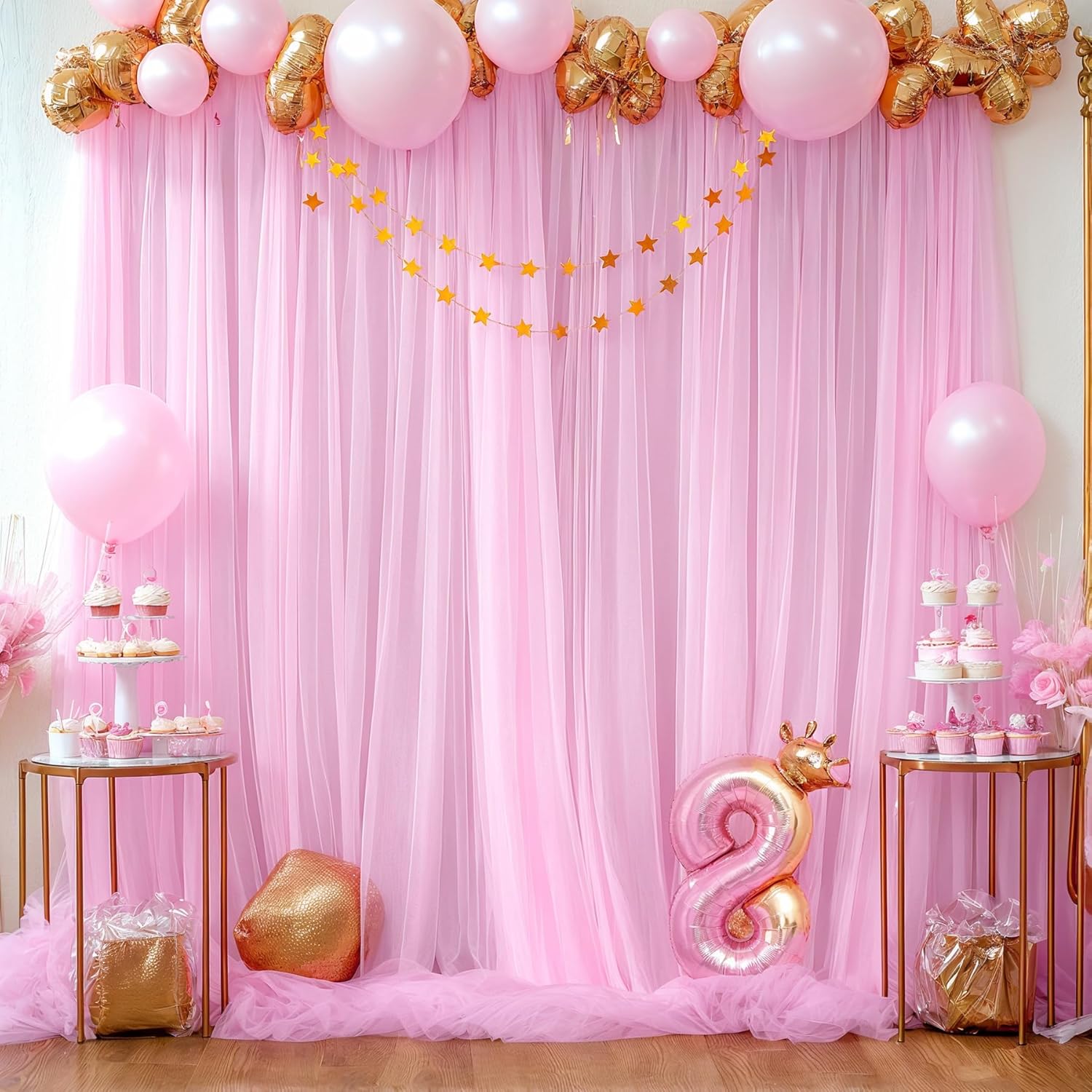 Pink Tulle Backdrop Curtain for Parties Girls Baby Shower 10ft X 8ft Light Pink Sheer Backdrop Curtains for Birthday Party Wedding Photo Booth Decorations 2 Panels 5ft X 8ft