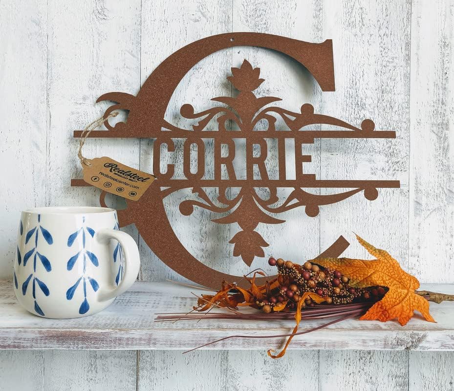 RealSteel Metal Split Letter Monogram โ€“ Personalized Last Name Sign for Home & Outdoor Dรฉcor โ€“ Custom Metal Wall Art โ€“ Family Name Sign, Welcome Sign