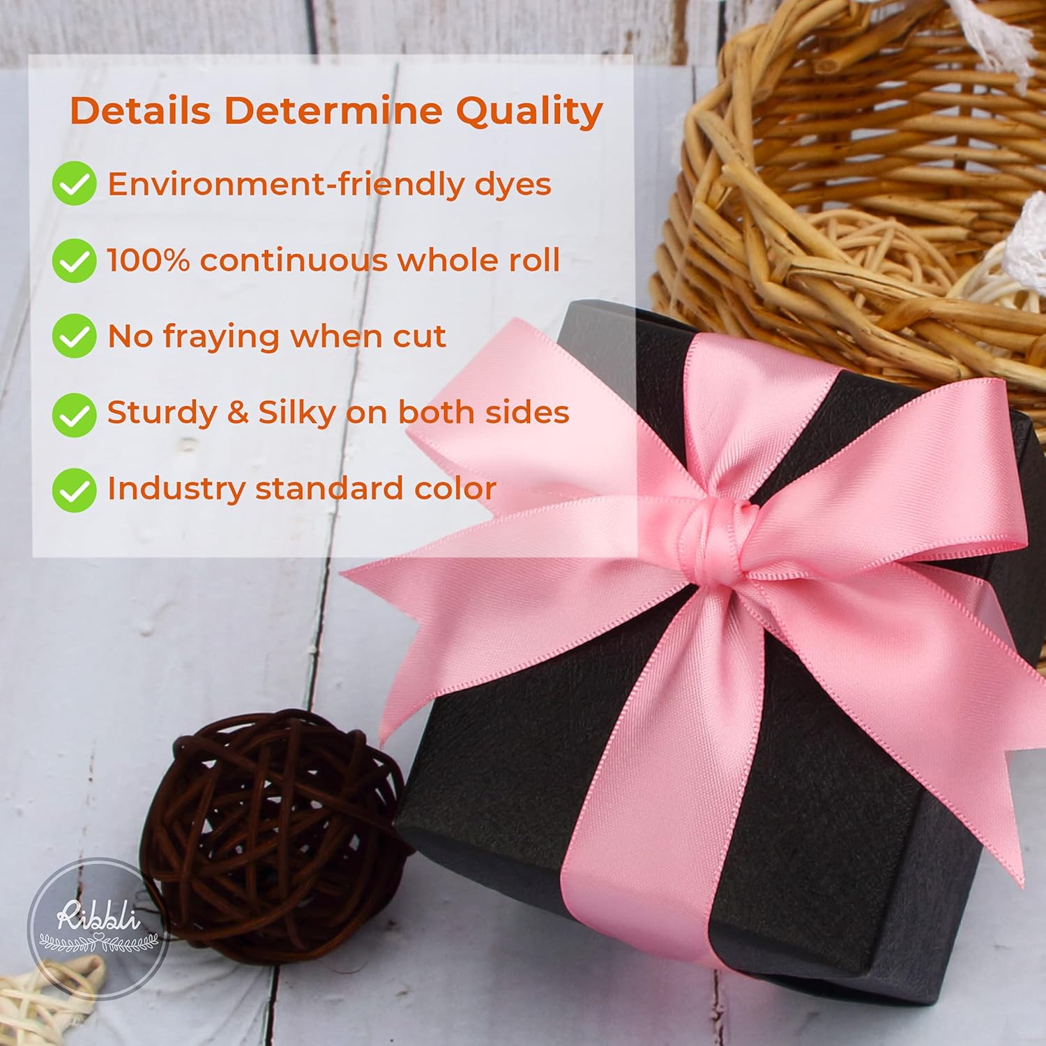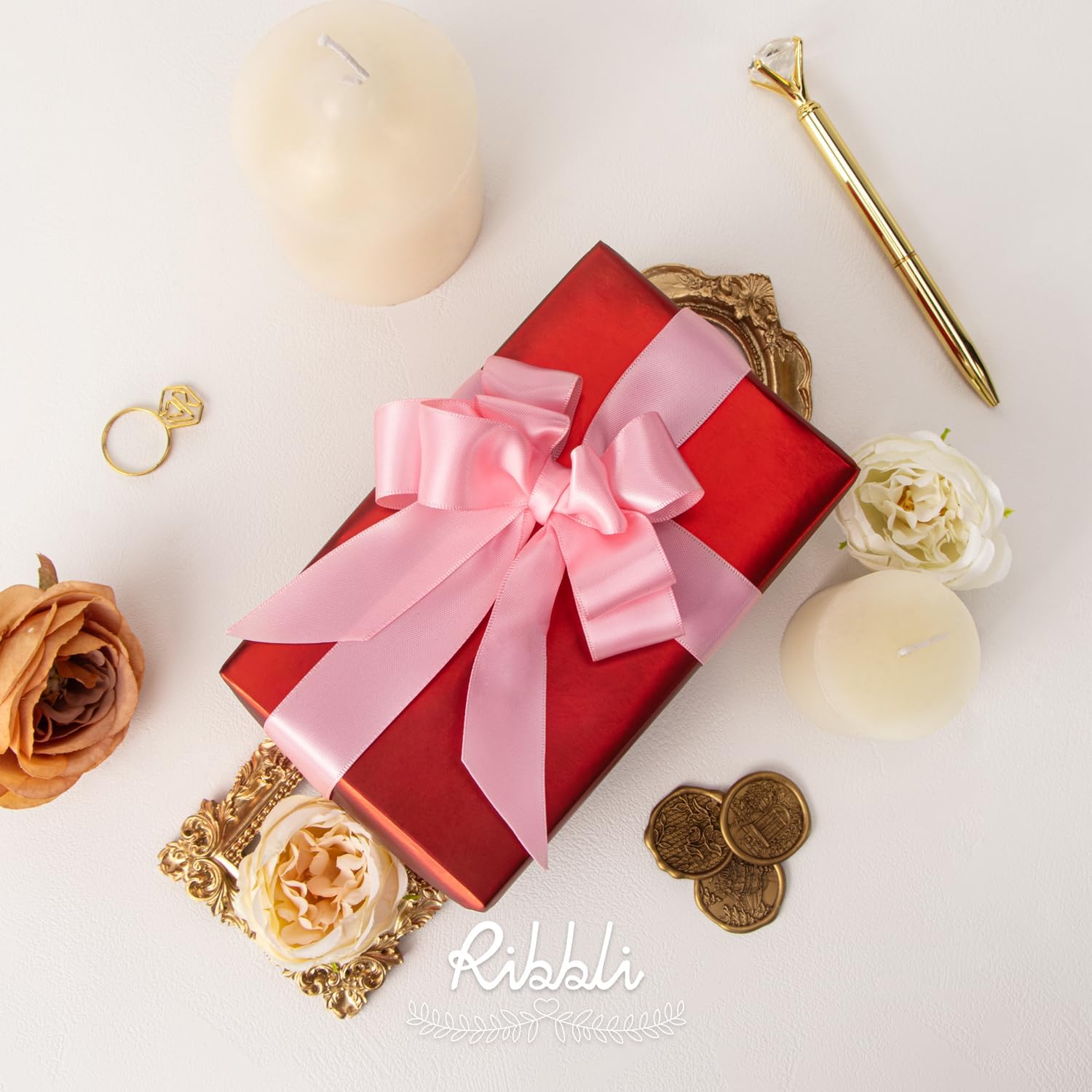Ribbli Double Faced Pink Satin Ribbon,1” x Continuous 25 Yards,Use for Bows Bouquet,Gift Wrapping,Baby Shower,Floral Arrangement