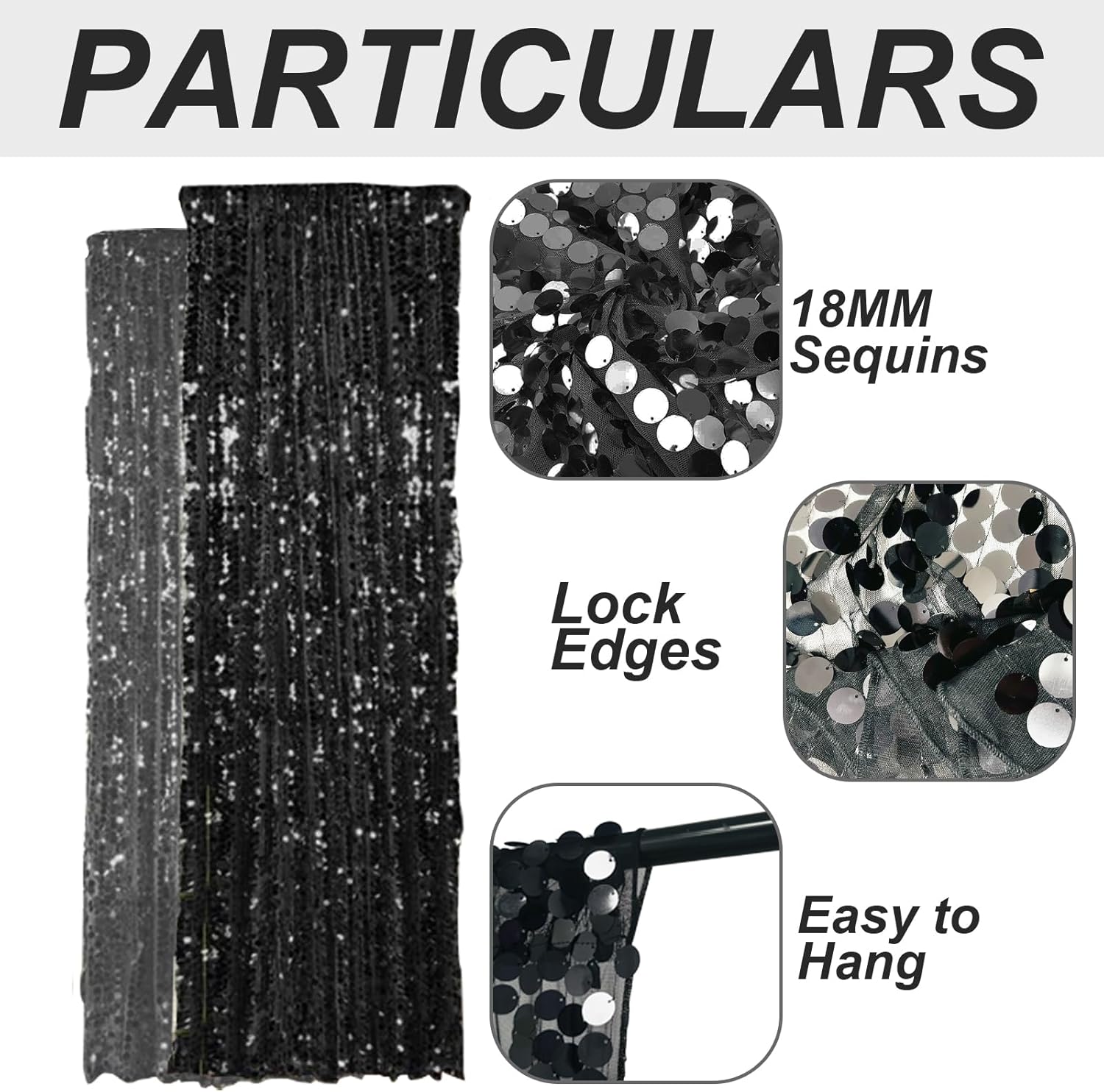 • Each order is for 2 (two) Black 4.5FT wide by 9FT height payette sequin curtains.