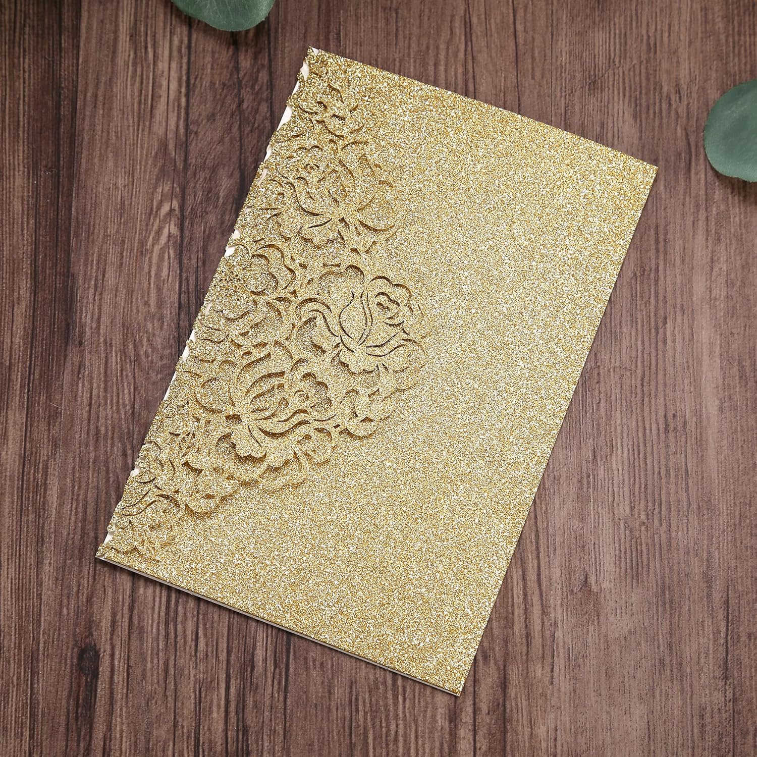 DORIS HOME 50pcs Laser Cut Quinceanera Invitations Gold Glitter, 4.7x7.1 Blank Quince Invitations for 15th Birthday, Invitation cards for Sweet 16 with Envelopes