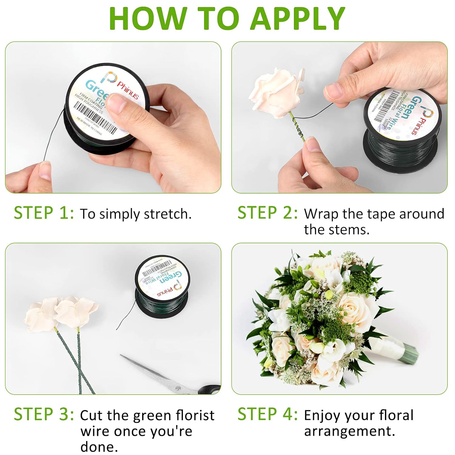 • FLEXIBLE: Thin and strong, the green florist wire does not break when bent 180 degrees, and can be easily wound around even the most complex stems, easy to cut and use when arranging bouquets.