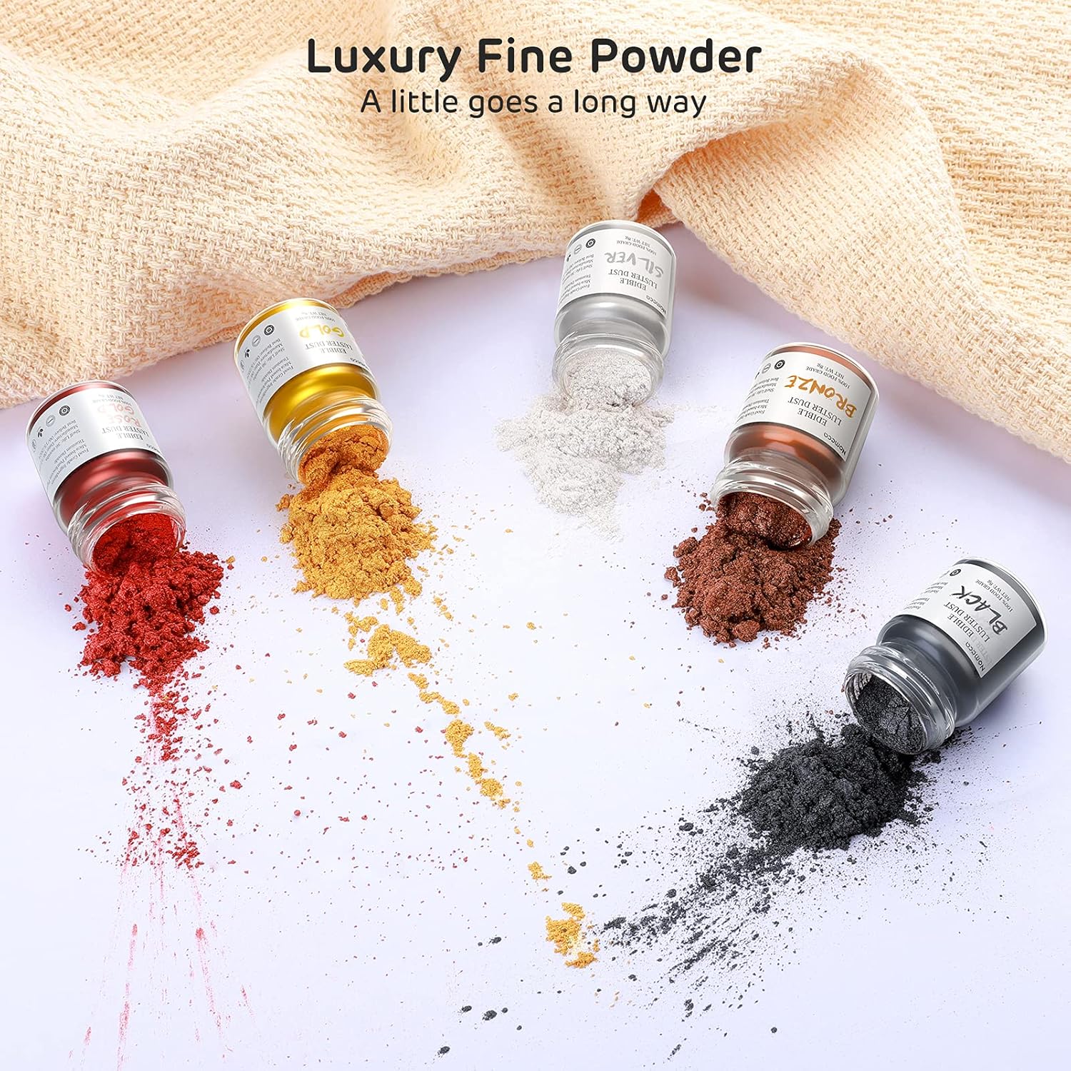 • LUXURY CAKE DUST -- Fine texture dust powder with shimmer result, this elegant luster dust helps to create high luster/glitter effect and adding a vibrant metallic finish to your project. With variety of colors to choose, gold dust is the most common colors, but the rose gold, silver, pink, bronze, Burgundy, pearl white, purple, teal and black also looks amazing