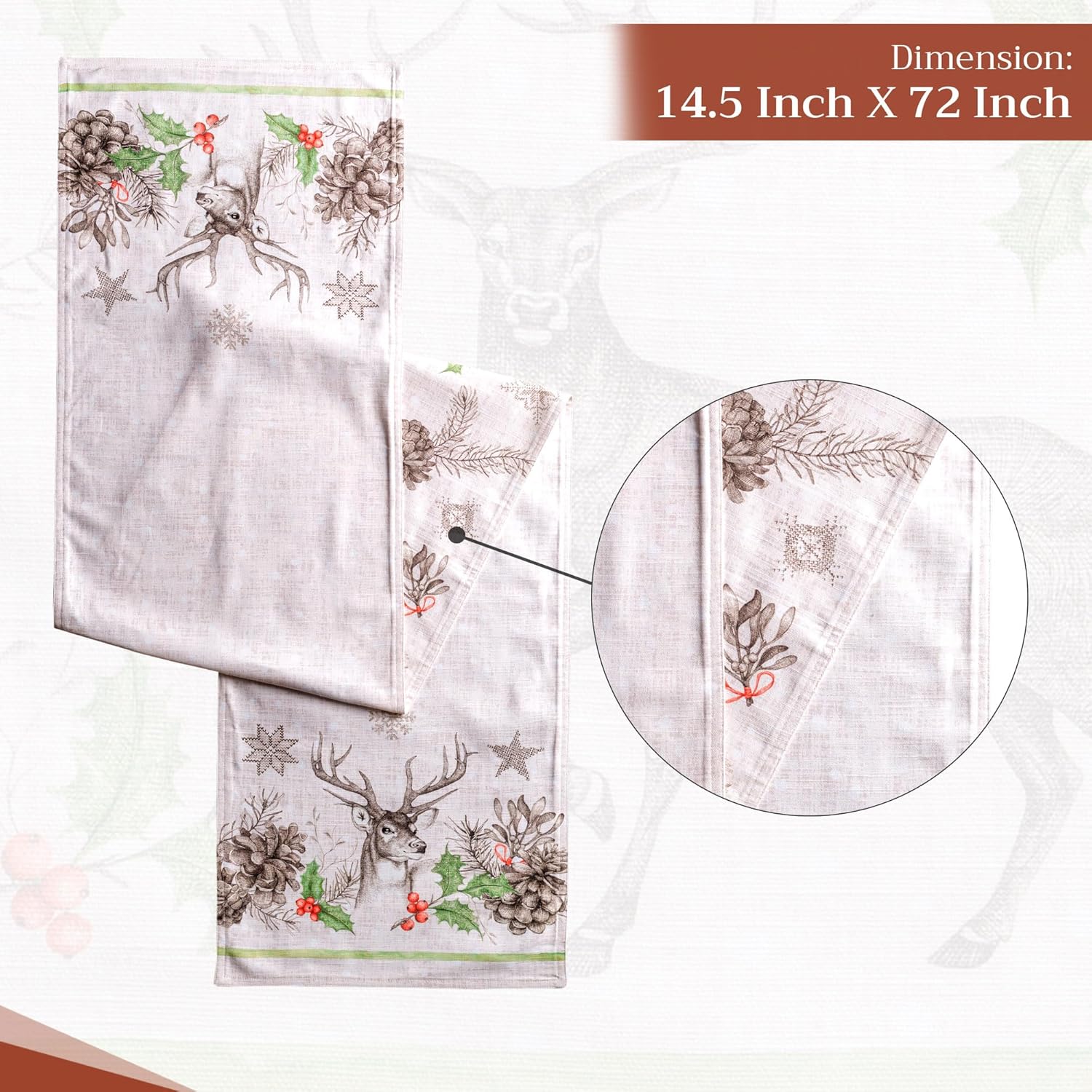 Maison d' Hermine Table Runner 100% Cotton Double Layer Table Runners 72 inches Long for Thanksgiving Christmas Decorations Home Kitchen Dining Party Wedding (Christmas Dew, 14.5" x 72")