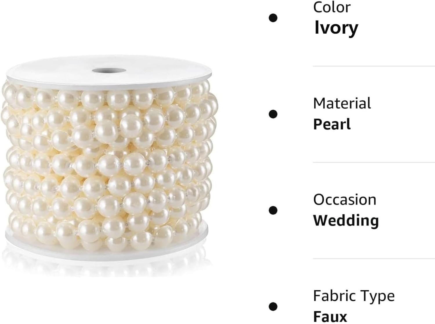 Half-Round Pearl Bead Garland String 11 Yards, 10MM Flat Pearl Beaded Spool Roll Crafts for Wedding Party Decoration (Ivory)