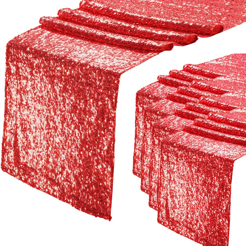 Eternal Beauty Red Table Runner for Wedding, 5PCS-12x108 Sequin Table Runner Decorations for Birthday Parties, Banquets, Graduations,Christmas