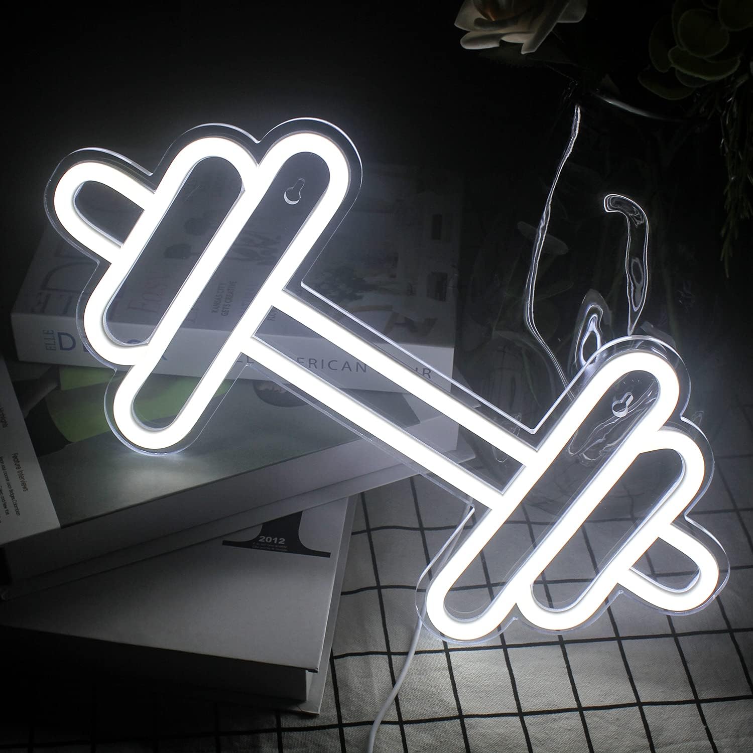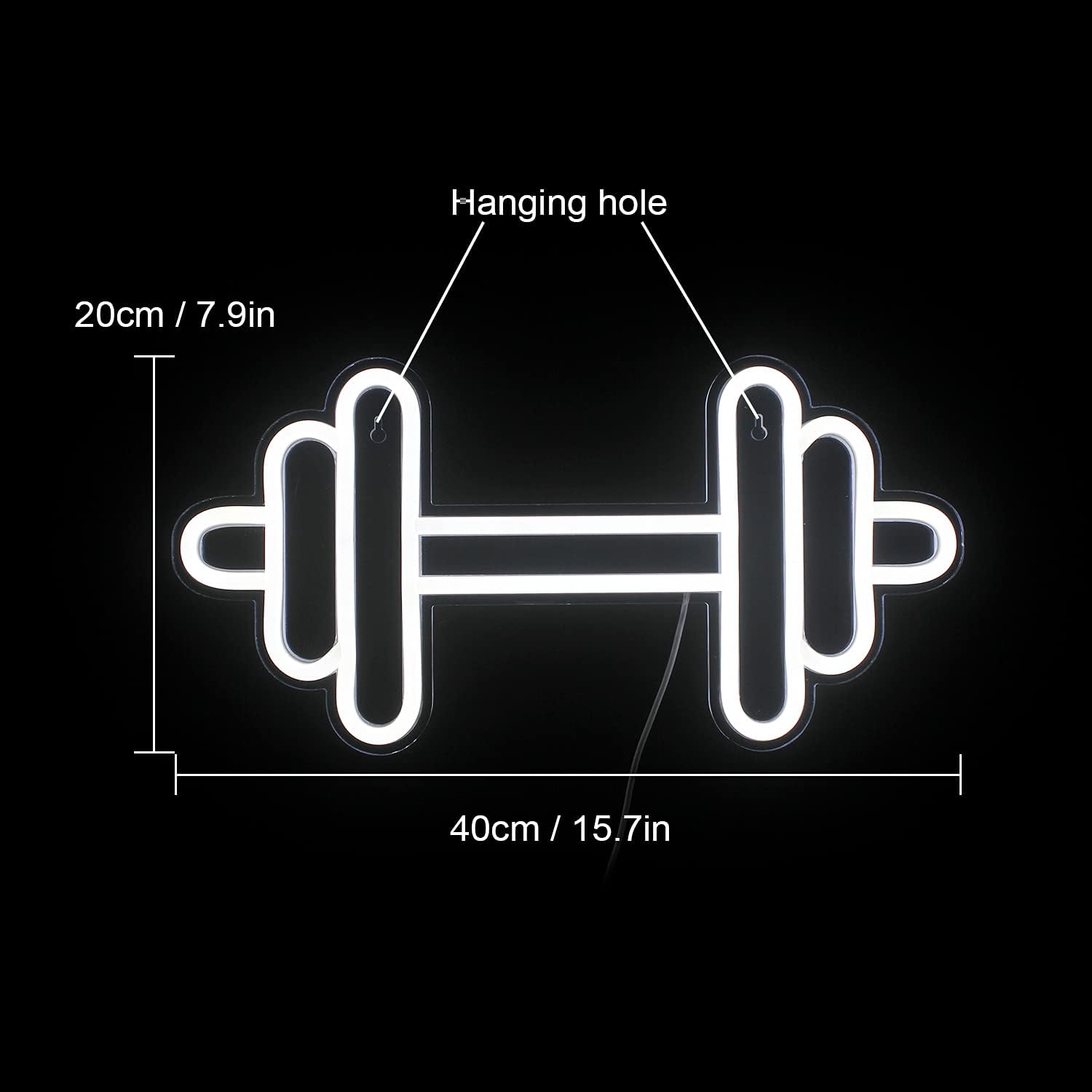 Lucunstar Gym Neon Sign,Barbell Dumbbell Shaped Neon signs White Neon Lights Sign Gym Wall Stickers for Fitness Club Decor LED Neon Sign for Teen Girls Teen Sports Room Game Room Decor