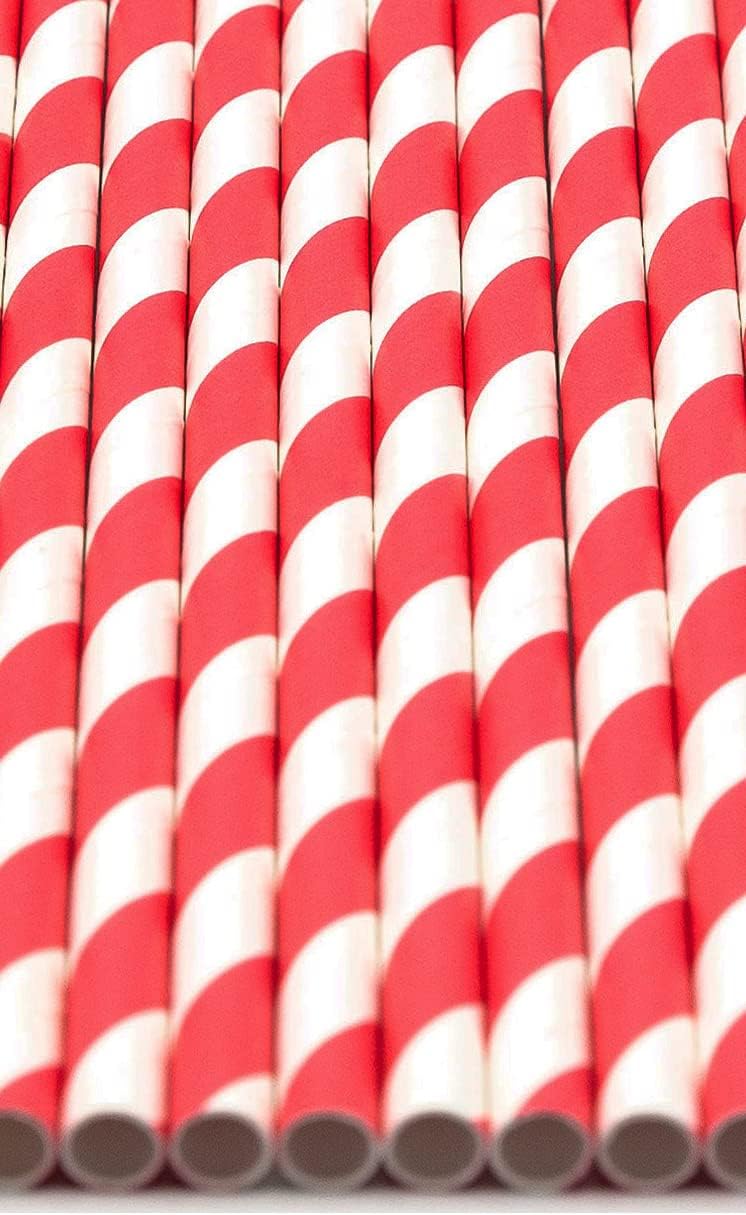 • Pack of 900 Red Swirls wrapped paper straws that are 7.75” long and have a diameter of 0.25”. Made with 4-ply paper which translates into thicker and more resilient straws that won’t wilt or change shape in both hot and cold drinks.