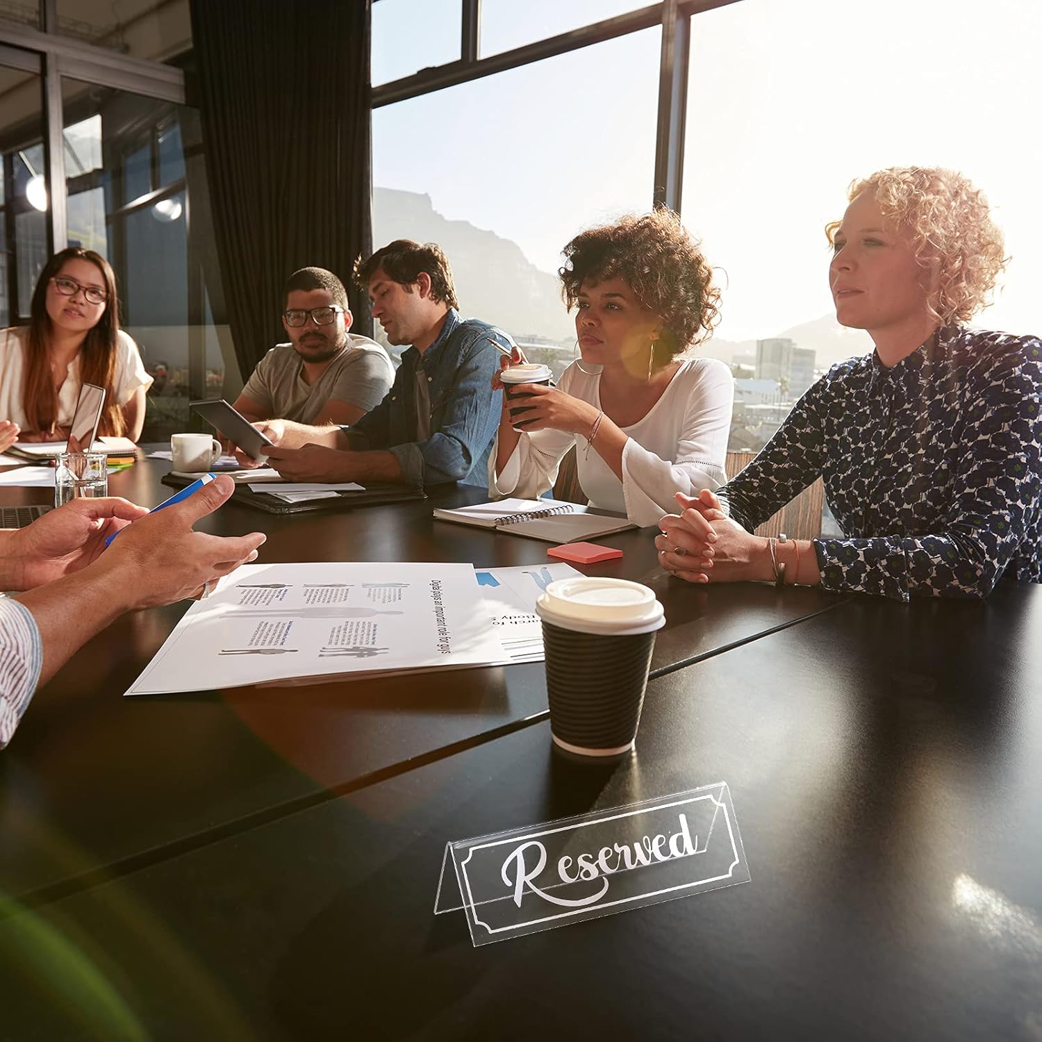 16 Pieces Reserved Sign Acrylic Clear Reserved Table Tent Signs Table Number Holders for Wedding Printed Seating Reservation Restaurant Business Office Meeting Party (White)