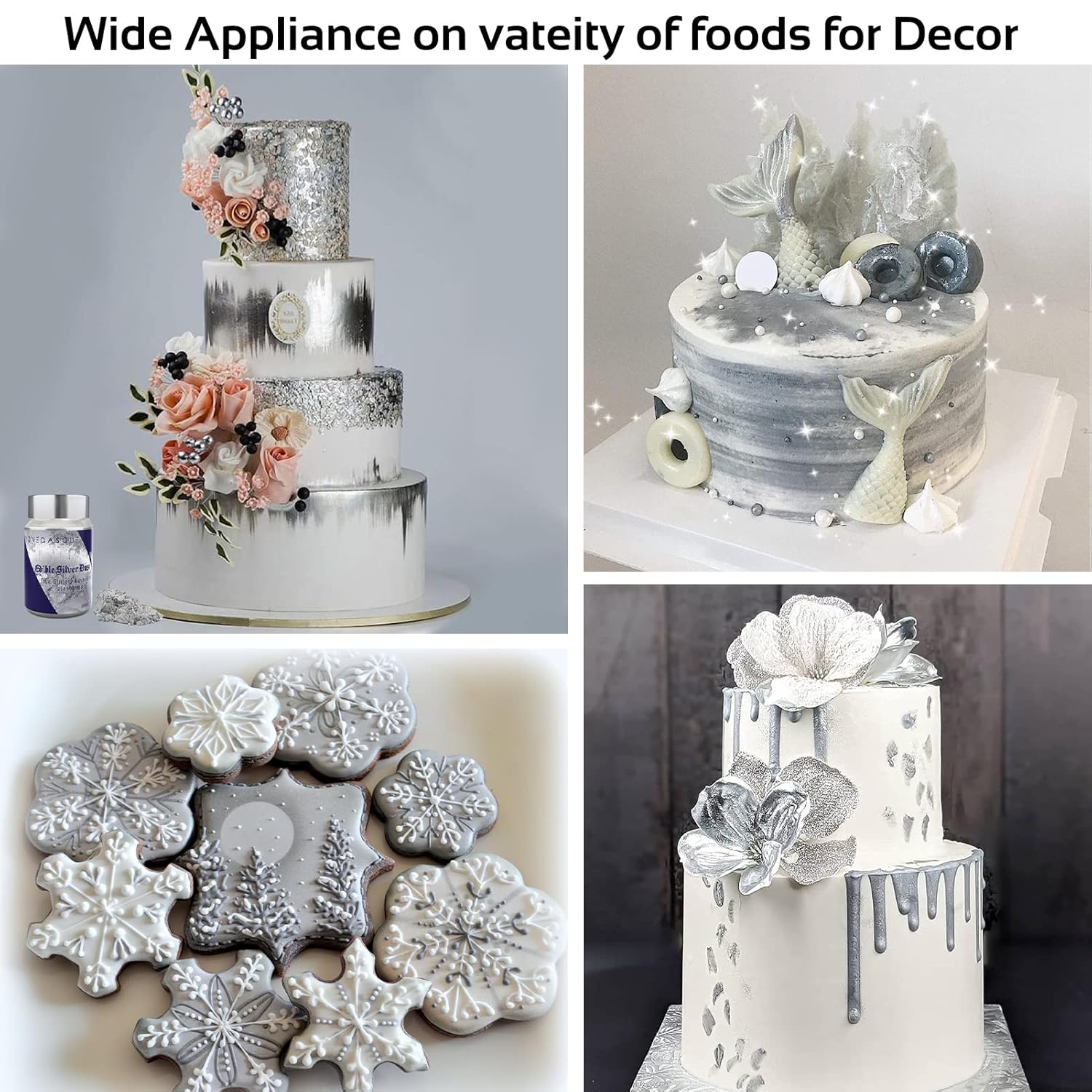 Jelife Silver Edible Luster Dust - 5 Grams Food Grade Cake Dust Shimmer Powdered, Edible Metallic Powder Food Coloring for Cake Decorating, Chocolates, Fondant, Drinks, Painting & More, Vegan
