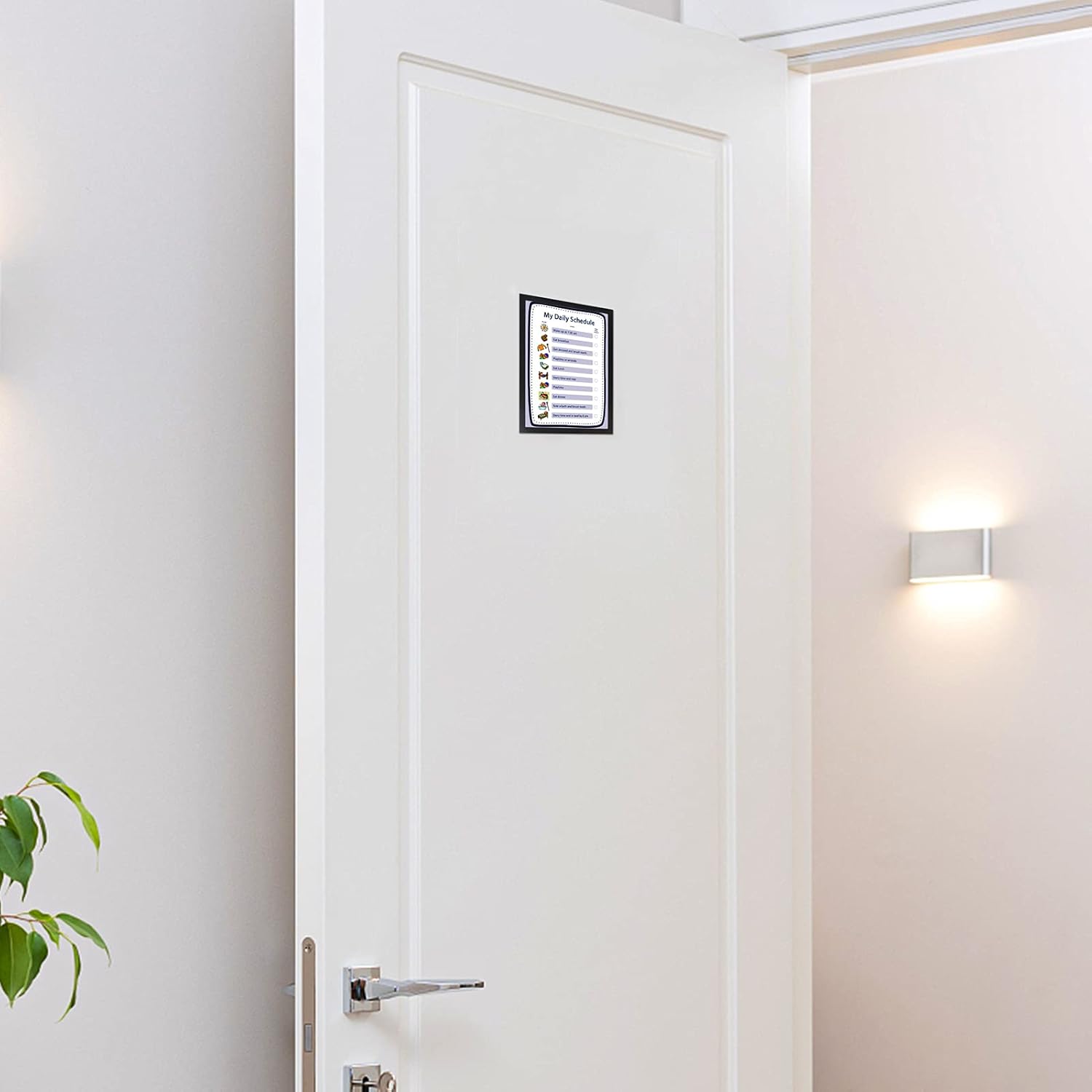 CRUGLA 5x7 Magnetic Picture Frames for Refrigerator 12 Packs, Modified Magnetic Sheet with Self Adhesive Backing, Black 5 by 7 Magnetic Photo Frame Set for Glass Window Door Cubicle