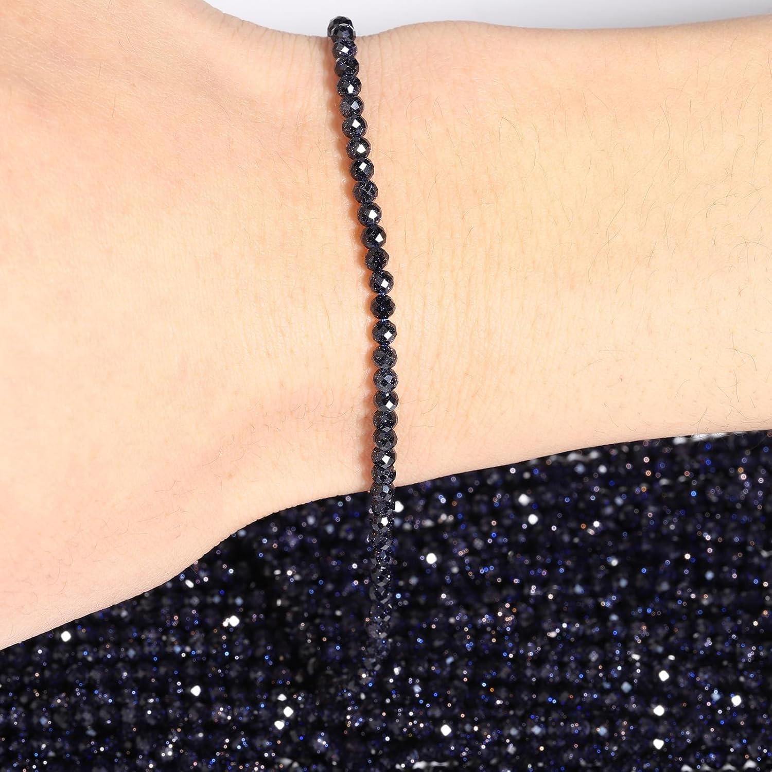 Song Xi 180pcs 2mm Natural Blue Sandstone Gemstone Beads Faceted Round Loose Stone Beads for Jewelry Making