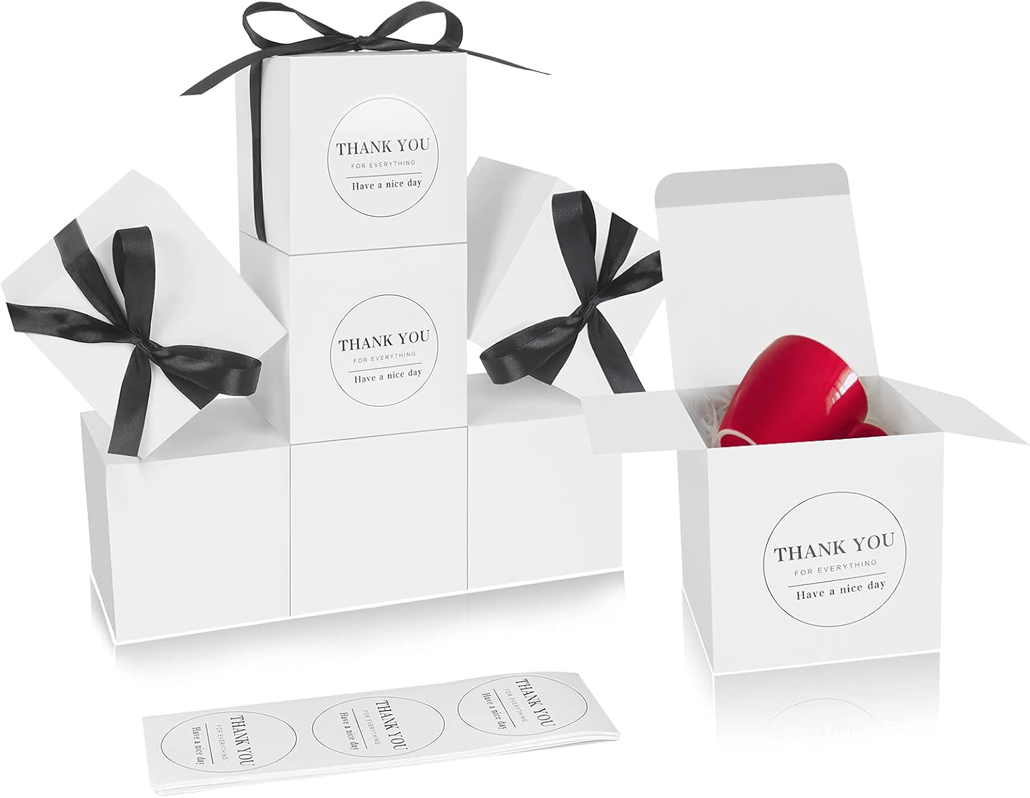 COTOPHER Small Gift Boxes 60 Pack 4x4x4 inches White Gift Boxes with Lids for Gifts, Crafting, Wedding Party Favor, Cupcake Boxes, Candy, Bridesmaids Proposal Box with Ribbons and Stickers (White, 60)