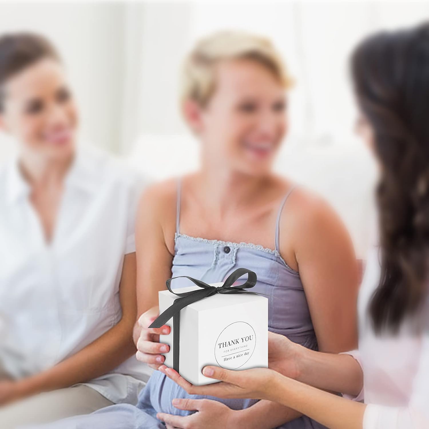 • What You'll Get: 60pcs White favor boxes,60pcs black ribbons and 60 pcs thank you stickers you can tie a bow knot on top, which will be more elegant and romantic for party.