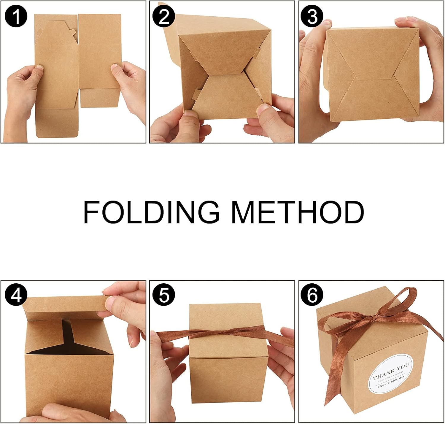 • What You'll Get: 60pcs Brown favor boxes,60pcs brown ribbons and 60pcs Thank you stickers. you can tie a bow knot on top, which will be more elegant and romantic for party.