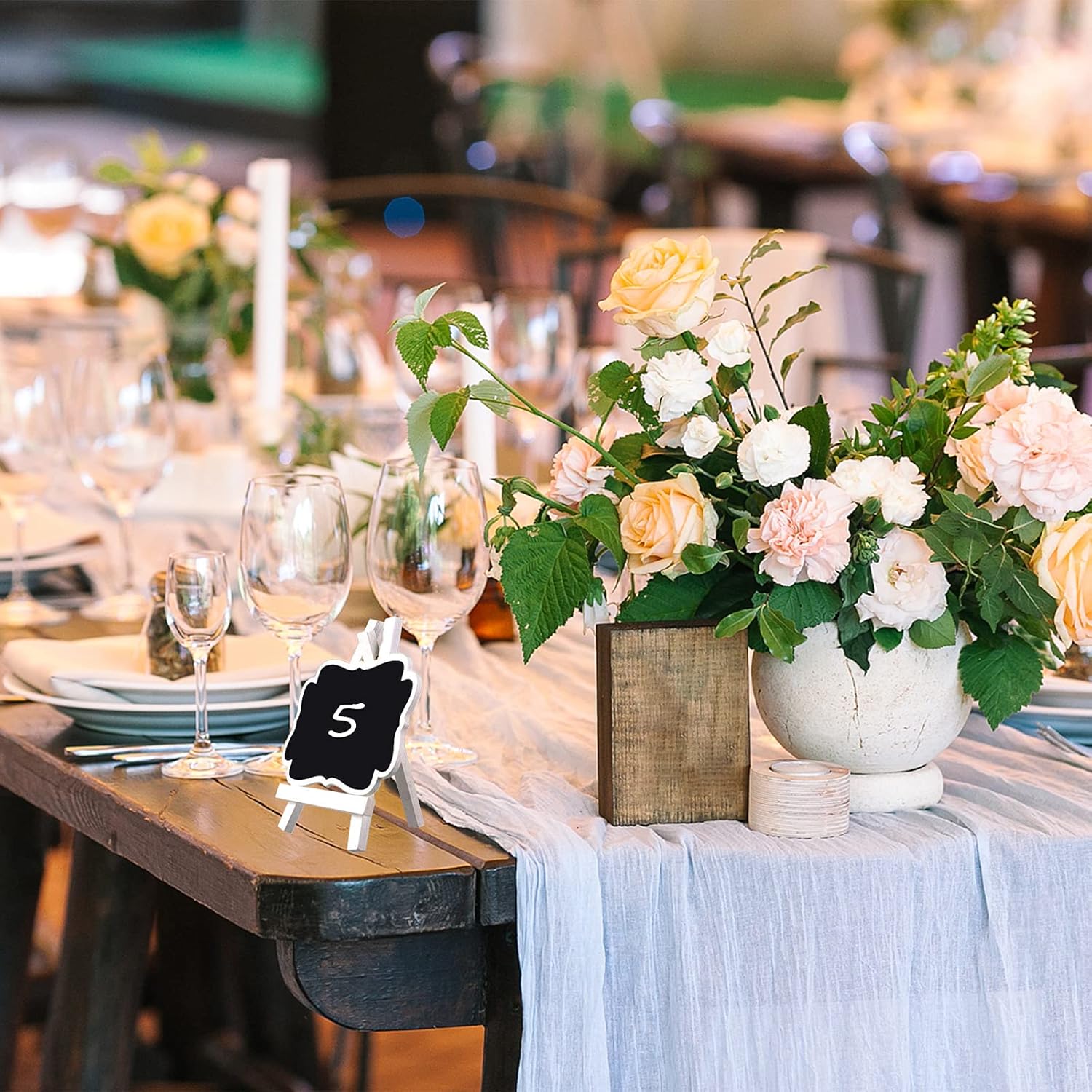 The table decor set was perfect! Stylish and durable, got so many compliments from our guests. Fast shipping too.