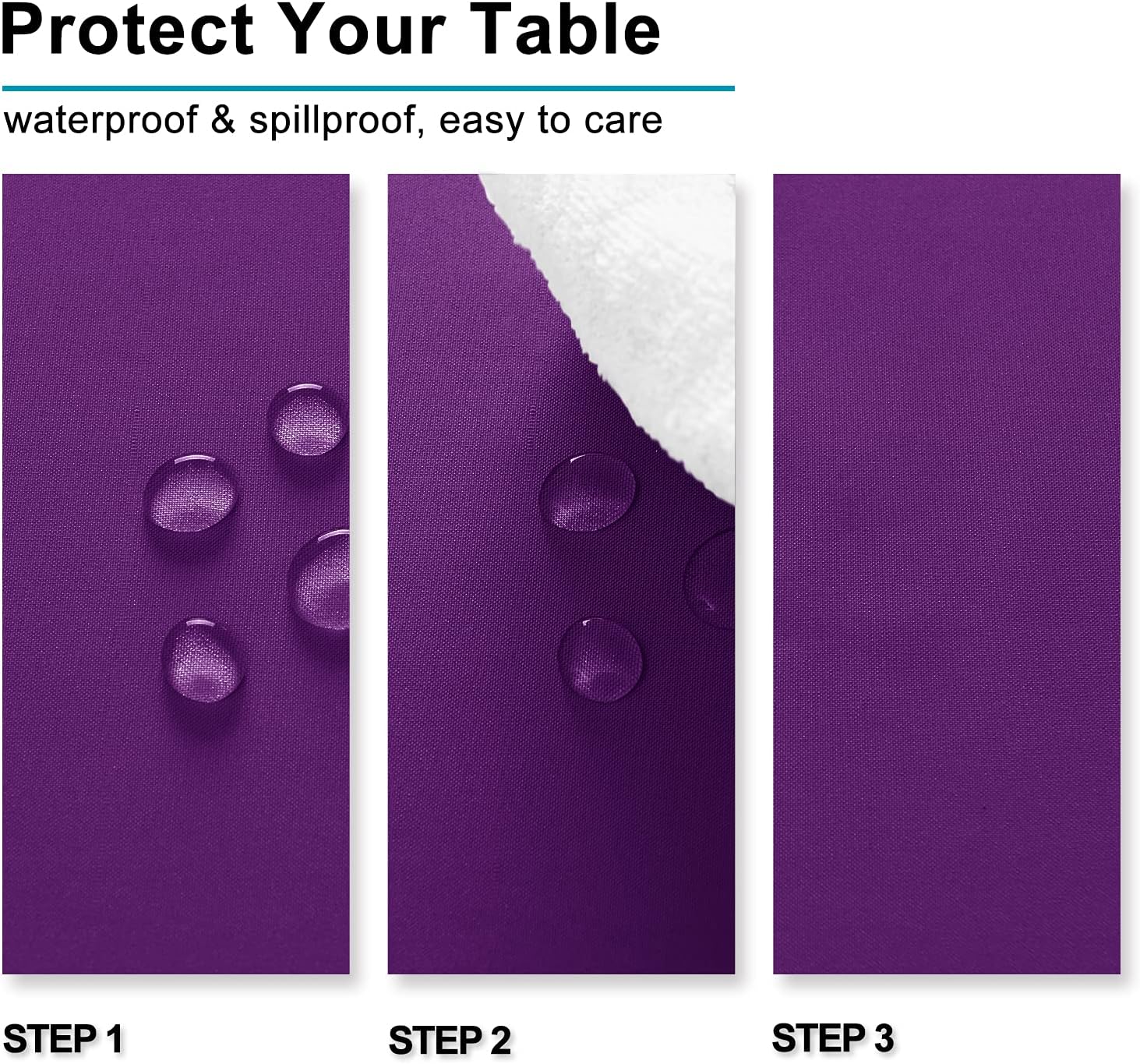 • Waterproof and Spill-proof Table Cloths: Featuring a fade and spill resistant polyester fabric, our tabletop covers easily protect your tables and furniture from scratches, stains and sun rays