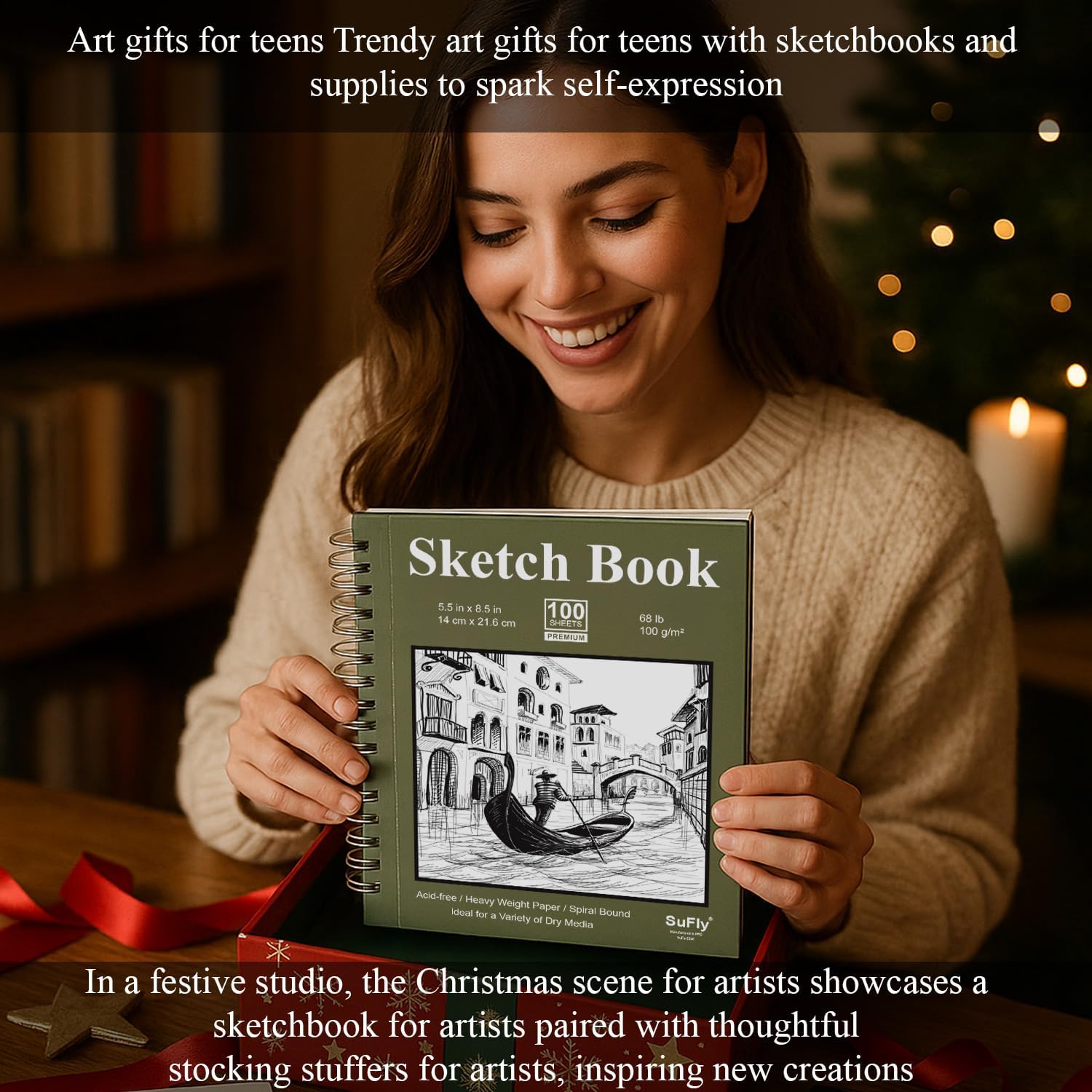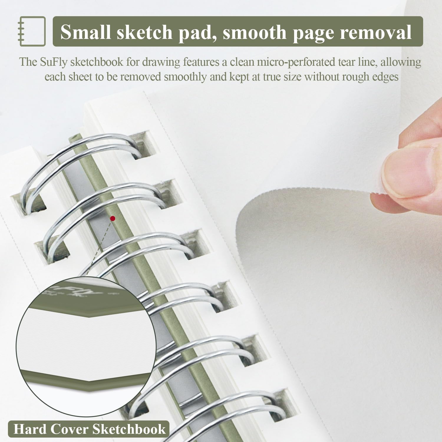 • PREMIUM MATERIAL MINI SKETCH BOOK - SuFly art sketchbook consists of 200 sheets of high quality acid-none and PH-neutral drawing paper with a thickness of 100 gsm, the sketch book 5.5x8.5 is sturdy enough to withstand multiple wipes while maintaining the original roughness of small sketch book that allows dry media to grip (such as graphite, charcoal, pencil, etc.), sketch books for adults would be a trusted choice for thousands of artists.