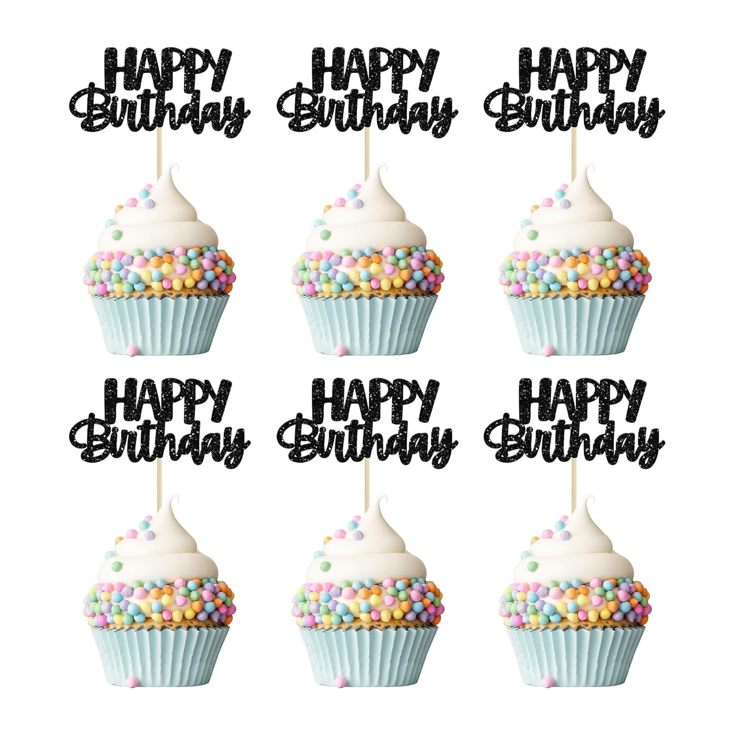 • 🌟 Premium Material: These glitter happy birthday cupcake Toppers are made of high quality paper and food-grade toothpick, very safe to put them on cakes, cupcakes, ice cream, fruits, pie, dessert, cheese or any dish and food appetizer you want to decorate.