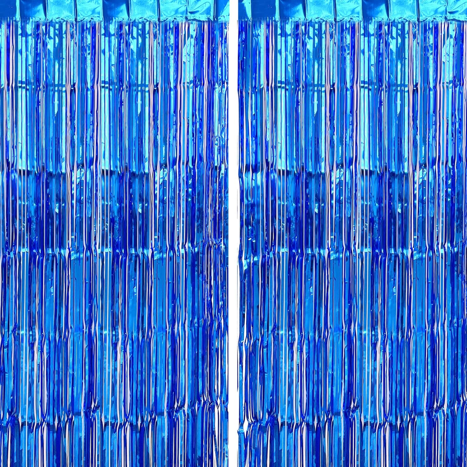 CHRORINE 2pcs 1m x 2.5m Blue Metallic Tinsel Foil Fringe Curtains, Party Streamers Backdrop for Kids Boy Birthday Baby Shower Bachelorette Bridal Shower Blue Party Decorations