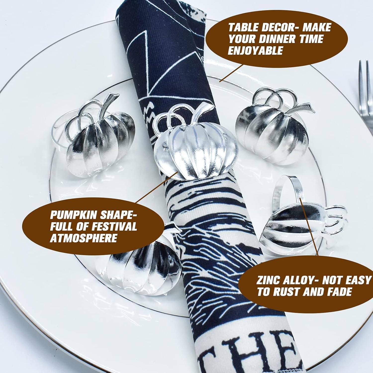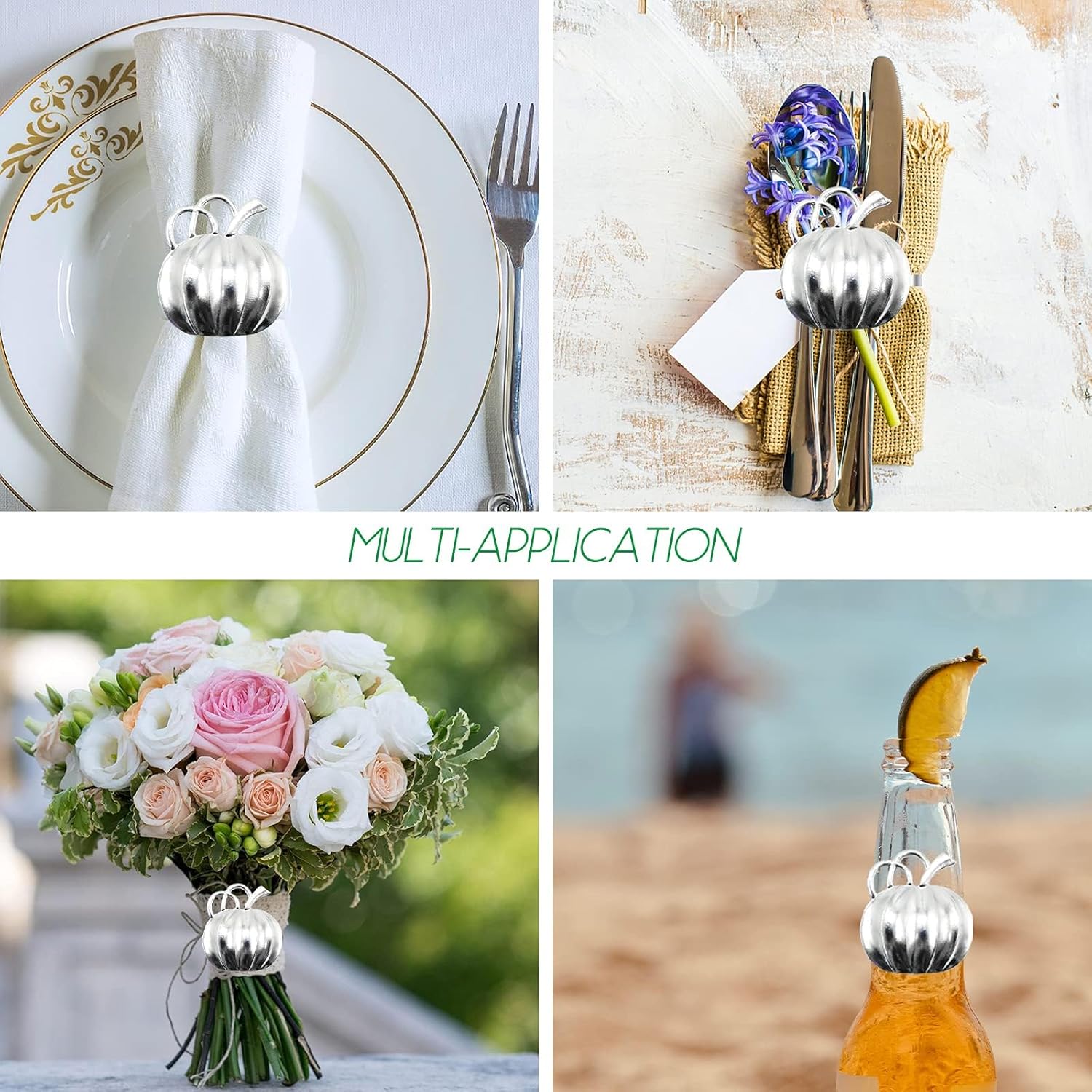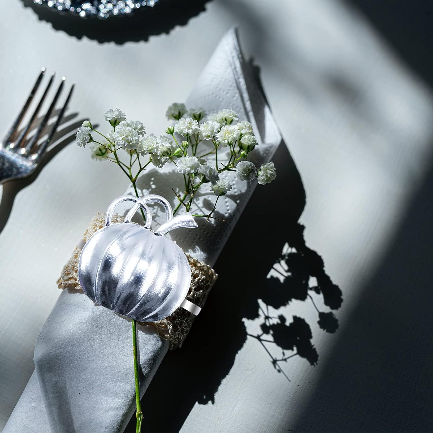 • 🎃🍁【VINTAGE PUMPKIN】Realistic harvest silver pumpkin design, looks simple and beautiful, connected with ring tightly and not fall off, really added a delicate to your table, bring lots of fun to your dinner time, and impress every guest deeply at your dinner party.
