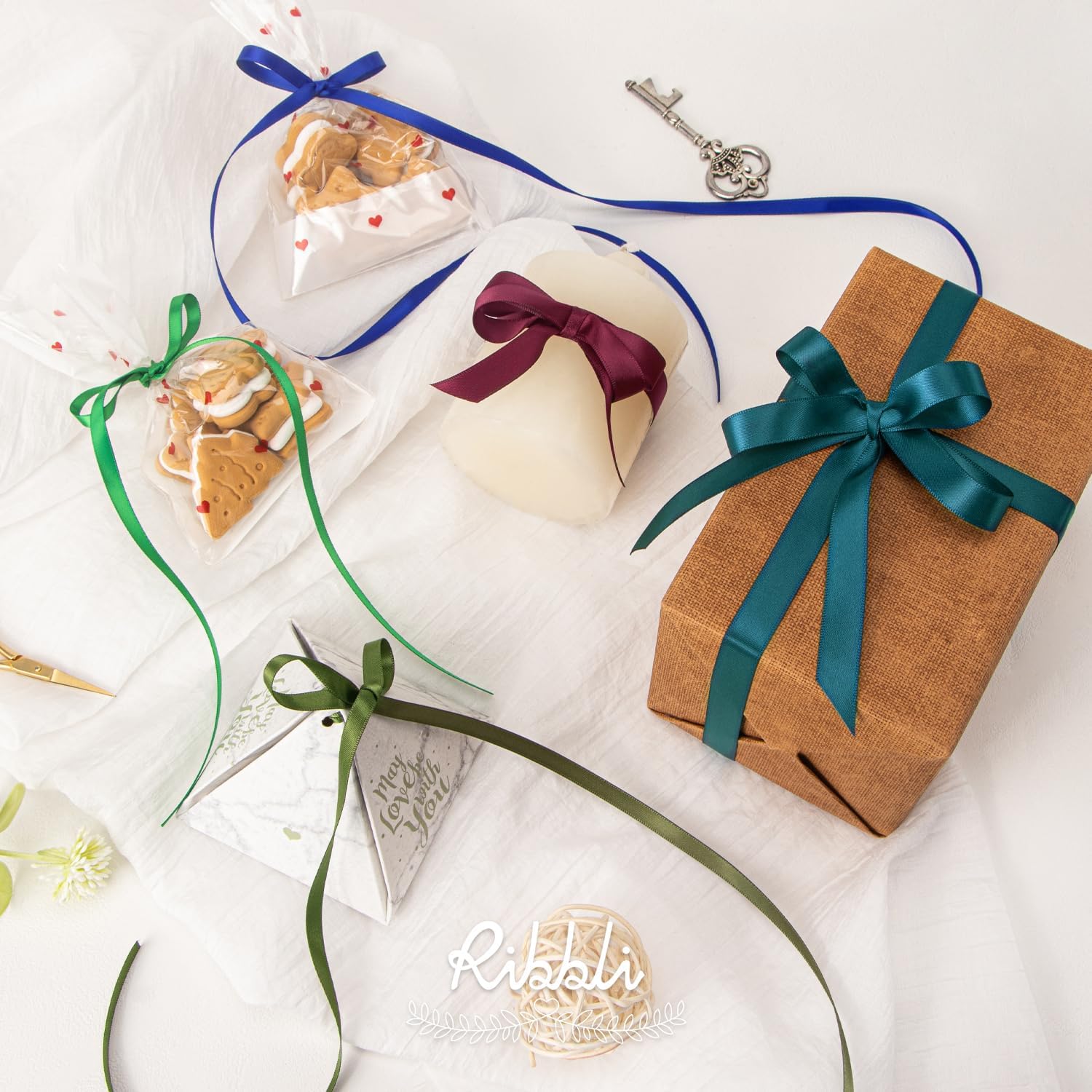 Ribbli Teal Double Faced Satin Ribbon,1/4” x Continuous 25 Yards,Use for Craft Bows Bouquet, Gift Wrapping, Wedding Decoration, Floral Arrangement