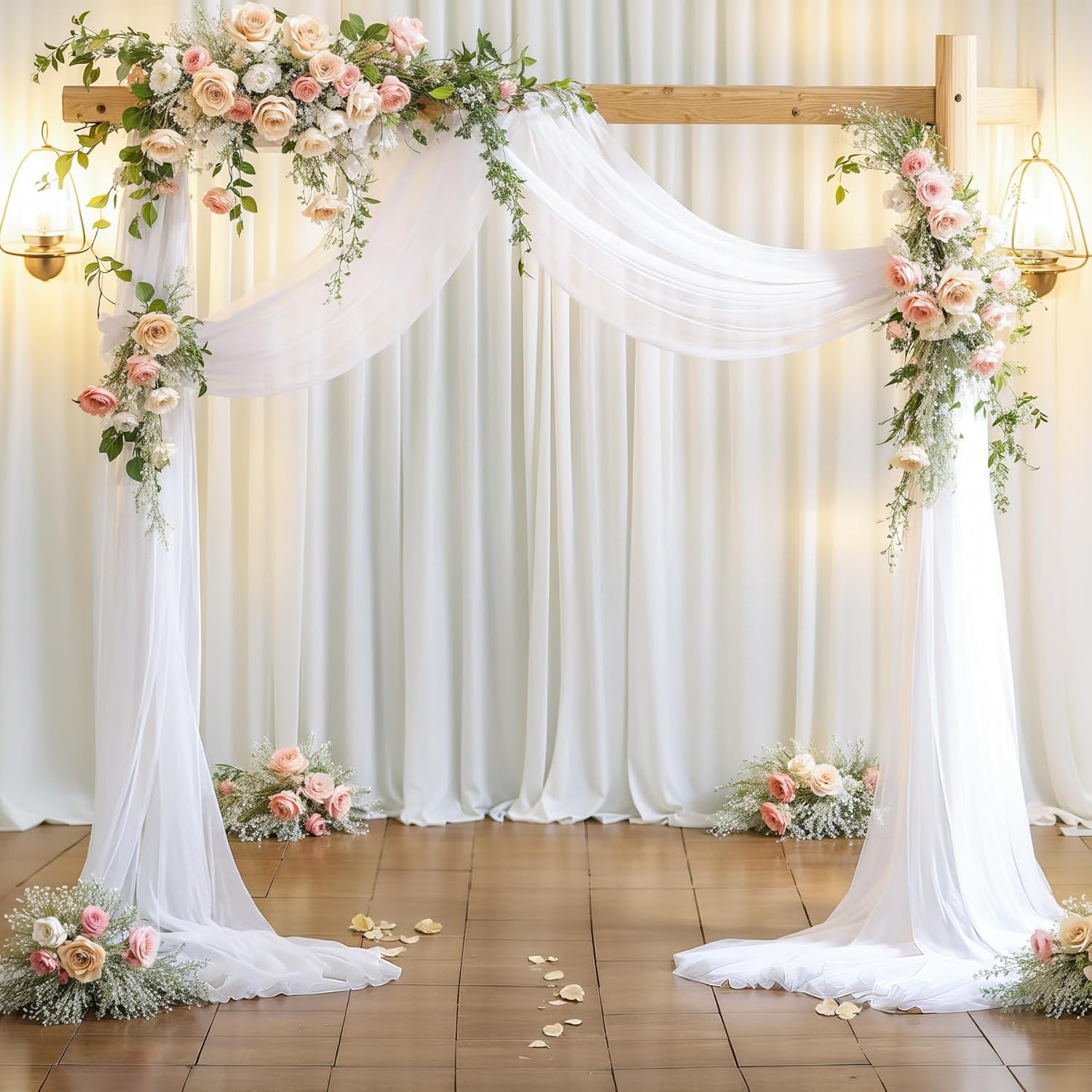 • Includes 1 panel of sheer white chiffon drapes, each panel is 27.5 in x 6 yd for wedding backdrop decor