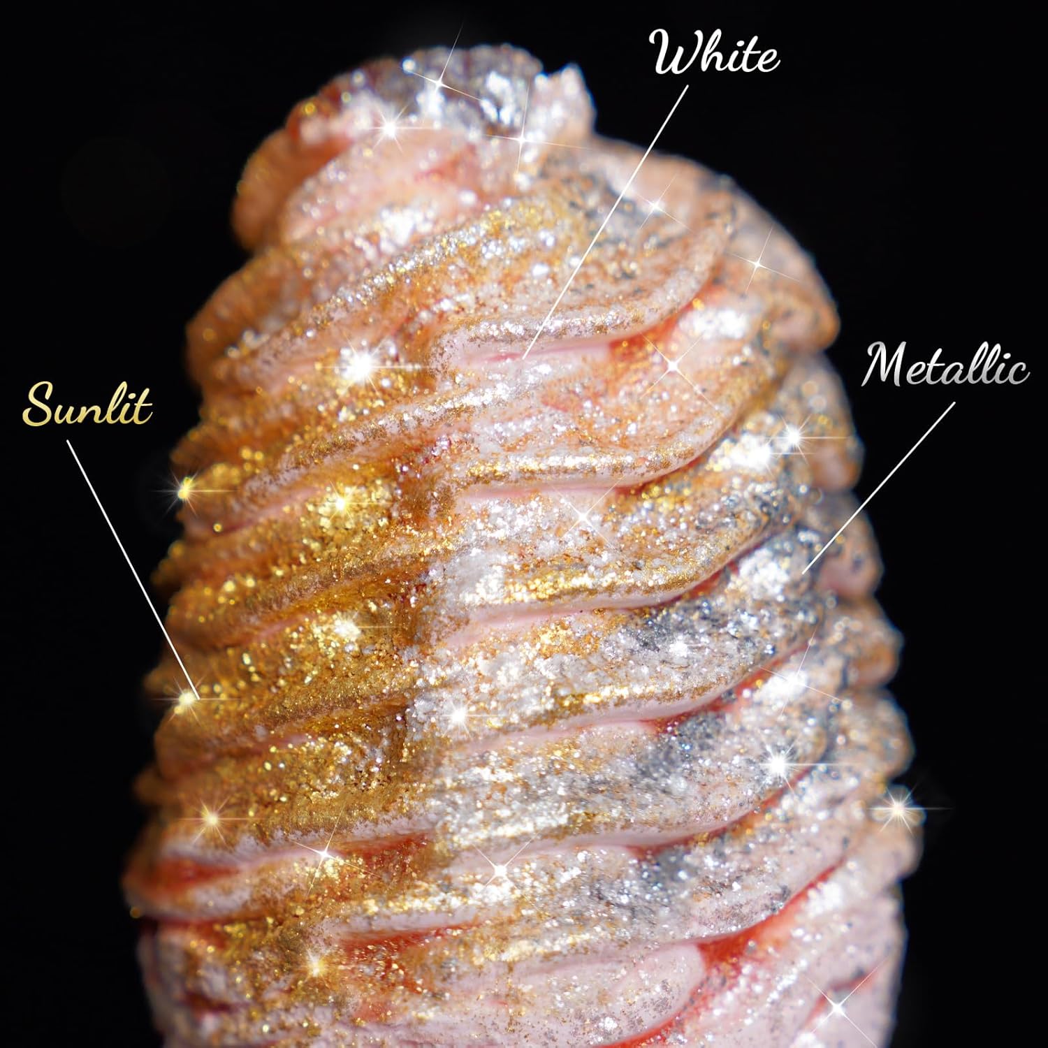 • ✔️【Easy to Use】Specially developed for food decoration and craft industries, this luster dust produces realistic looks by highly pigmented colors with a metallic finish. The pretty fine grain is more convenient for painting. To add glimmer and sparkle to your creations, simply sprinkle or dry brush the luster glitters on them. This product adheres very well to both wet and dry mediums. Attention: Seal and store glitter powder in a cool and dry place after use. Do not expose to excessive heat.