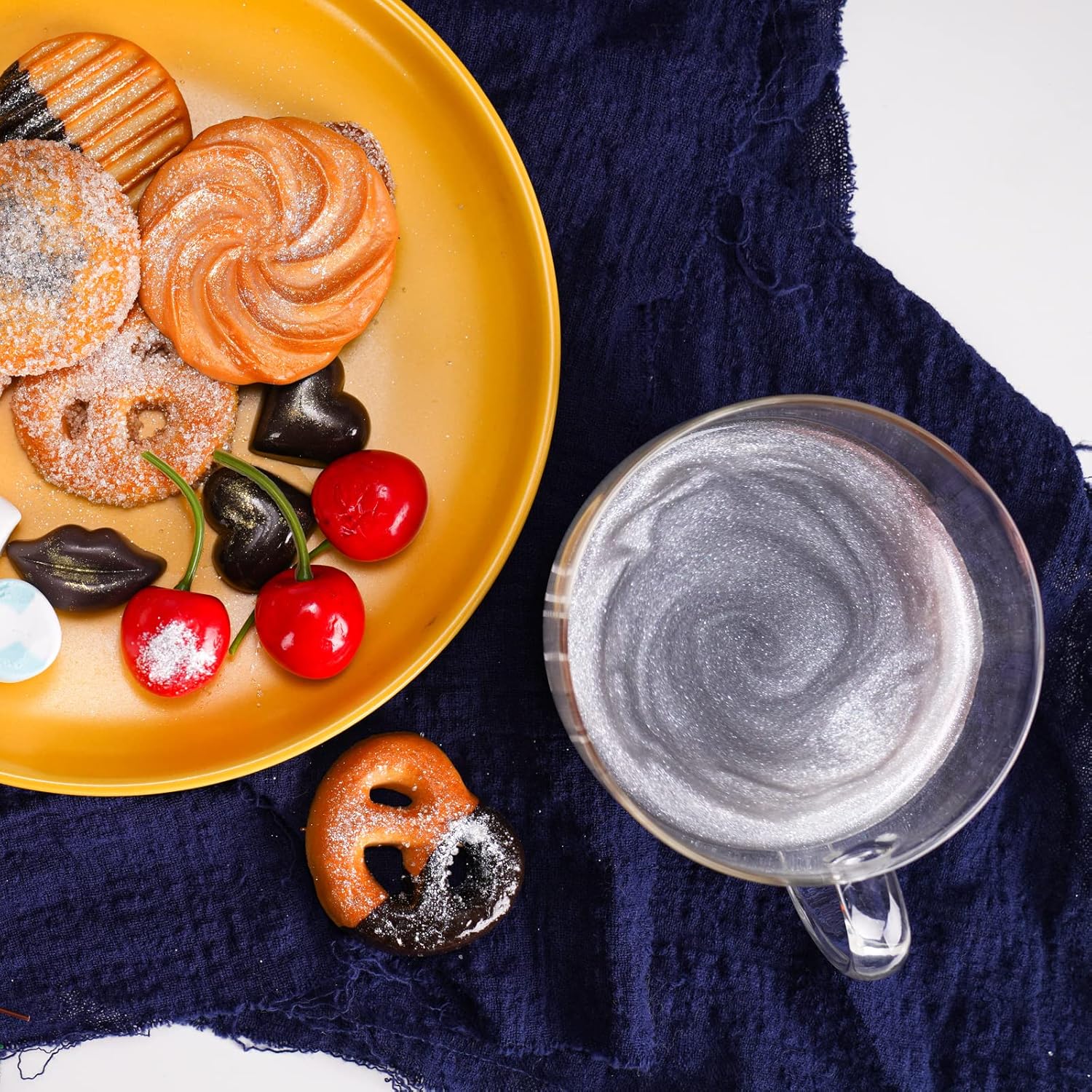 • ✔️【Use with Brews】Food-grade glitters are so fun and simple to use with brews. Add one pinch or two directly to your favorite beverage, mix it with cocktail syrups, juices, liqueurs, liquors, or spirits. Use a clear glass instead of opaque containers so that the liquid looks so cool, especially when you move it around in the glass with a stir. A tiny amount of dust can create a great visual spectacle, and clear liquids offer a great blank canvas for glitter to show off the best ability.
